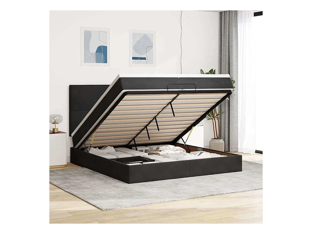 Cadre de lit ottoman avec matelas noir 200x200cm velours