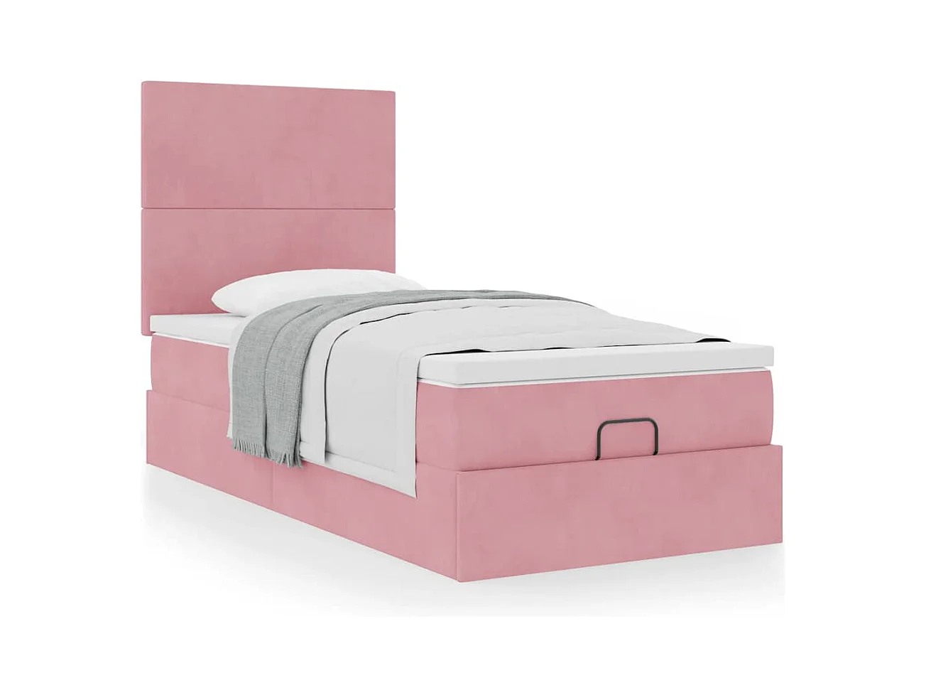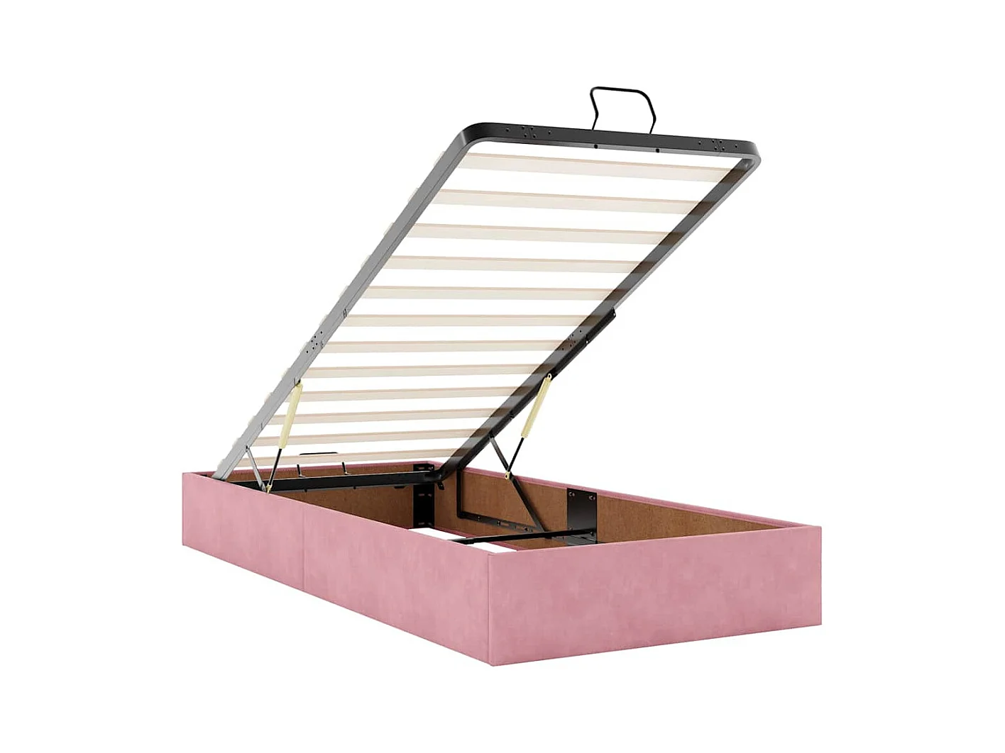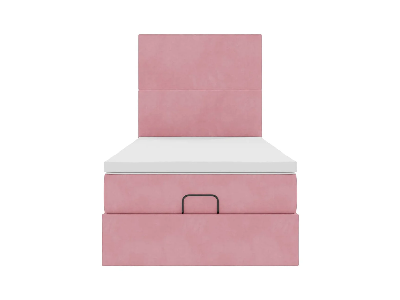 Cadre de lit ottoman avec matelas rose 90x190 cm velours