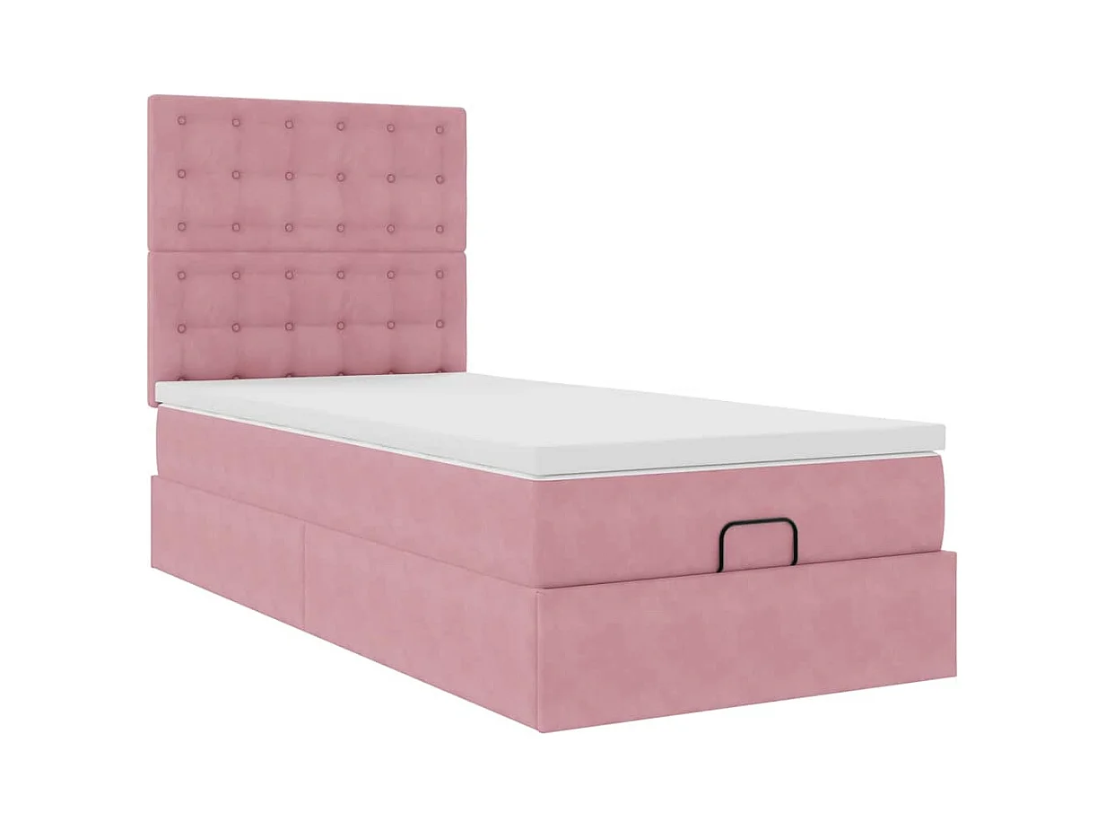 Cadre de lit ottoman avec matelas rose 90x200 cm velours