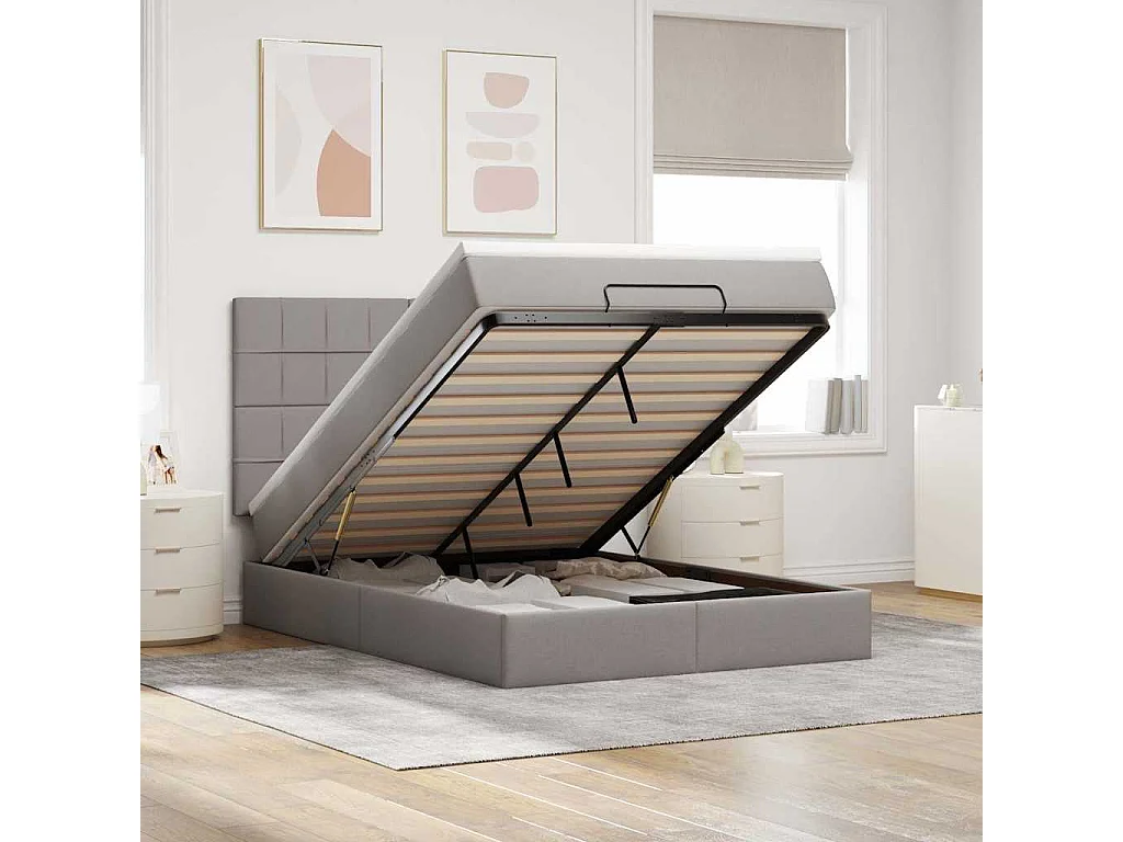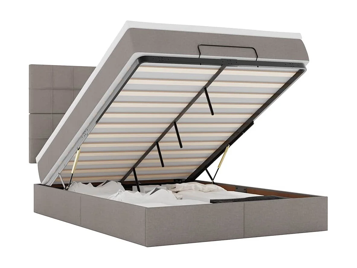 Cadre de lit ottoman avec matelas taupe 140x200 cm tissu