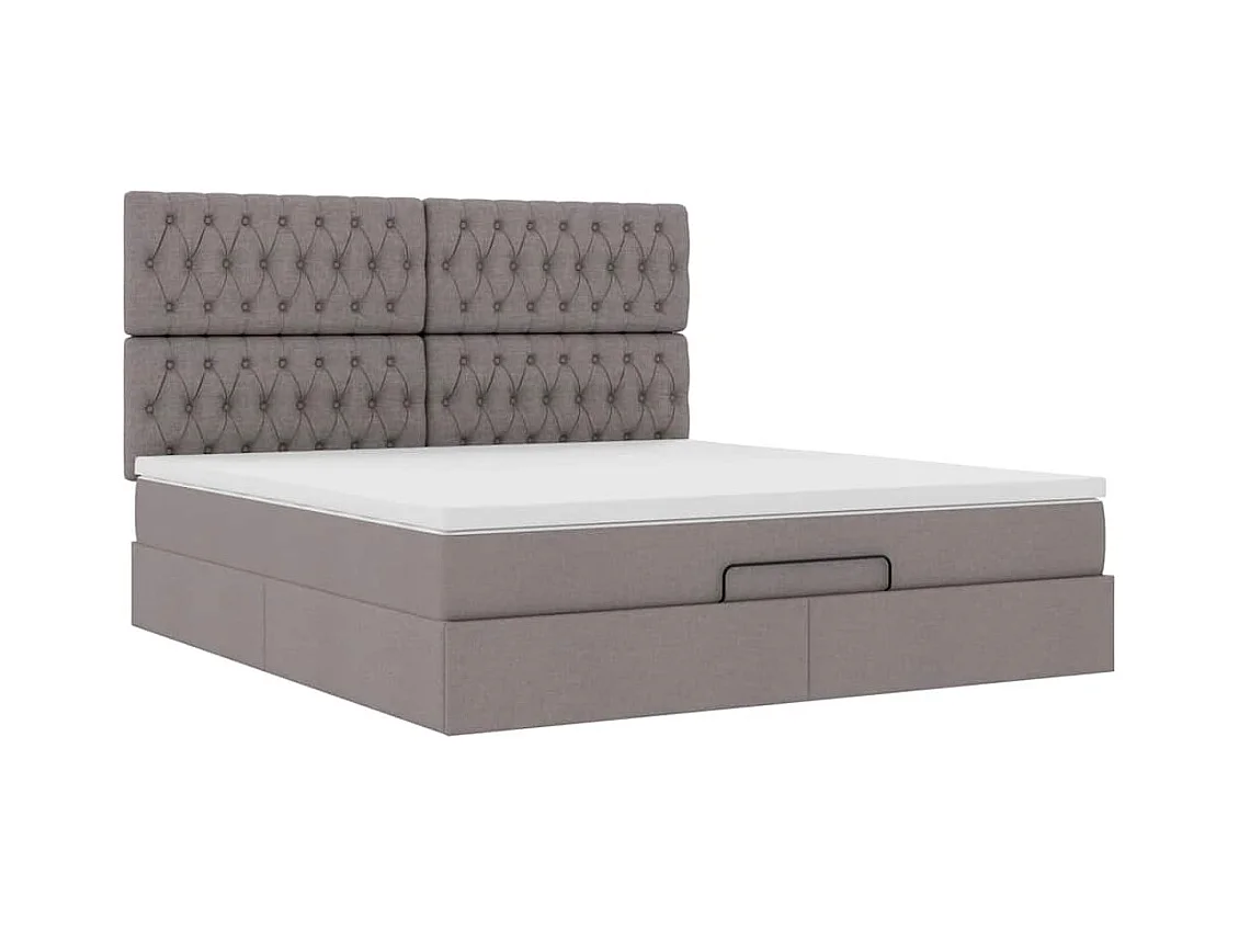 Cadre de lit ottoman avec matelas taupe 160x200 cm tissu