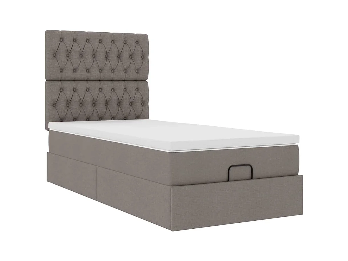 Cadre de lit ottoman avec matelas taupe 80x200 cm tissu