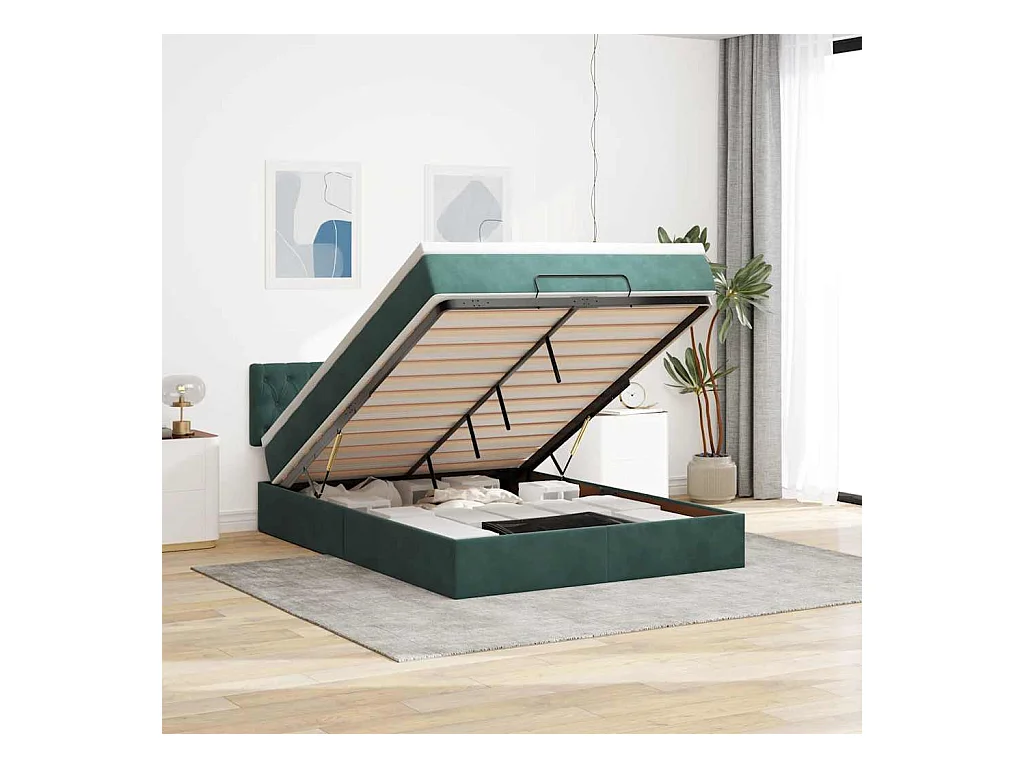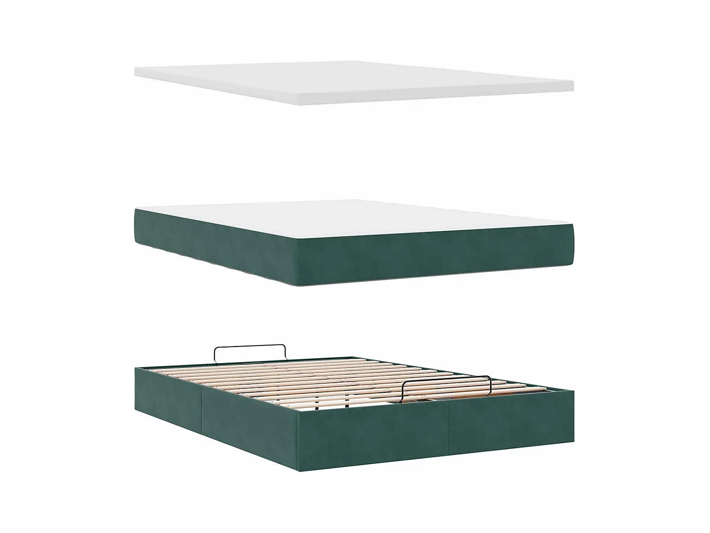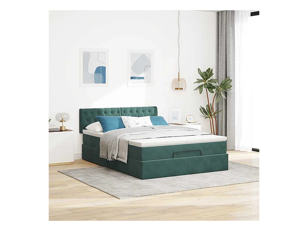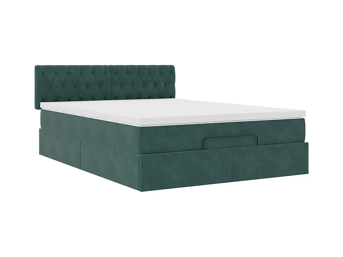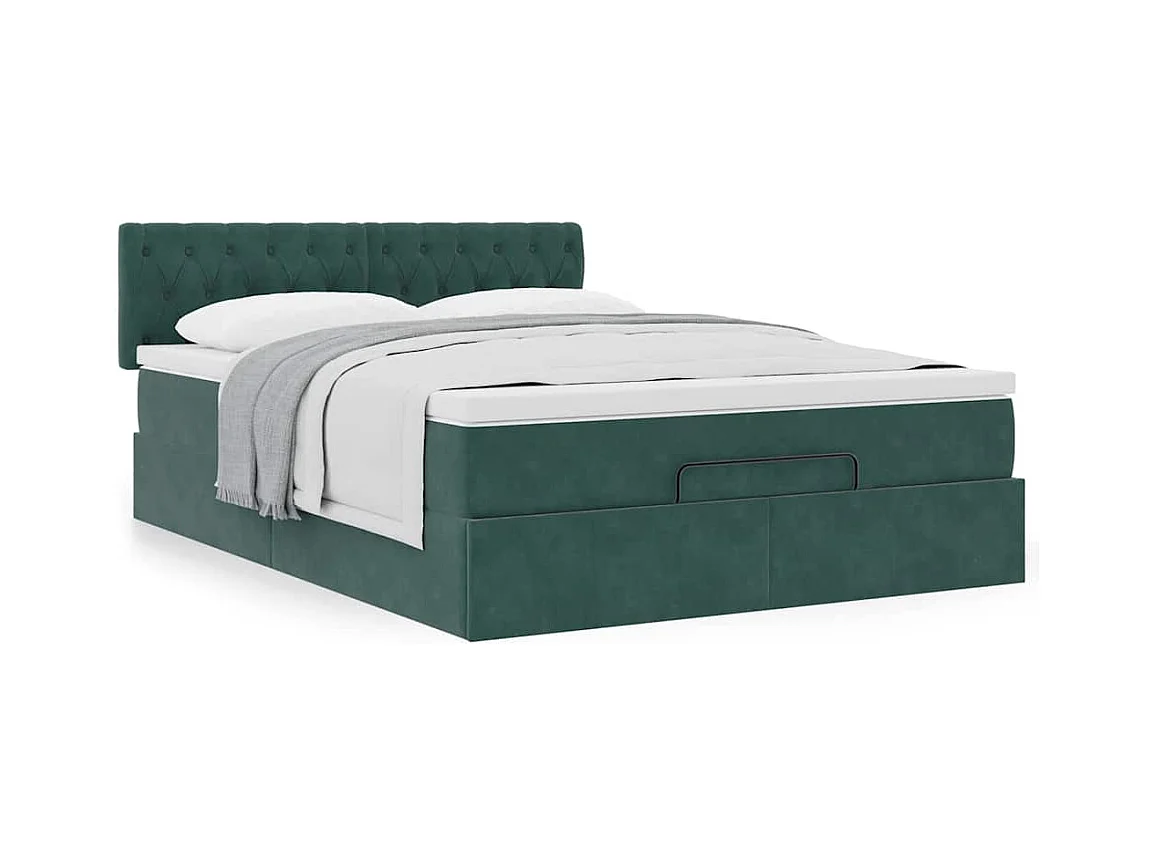 Cadre de lit ottoman avec matelas vert foncé 140x200 cm velours