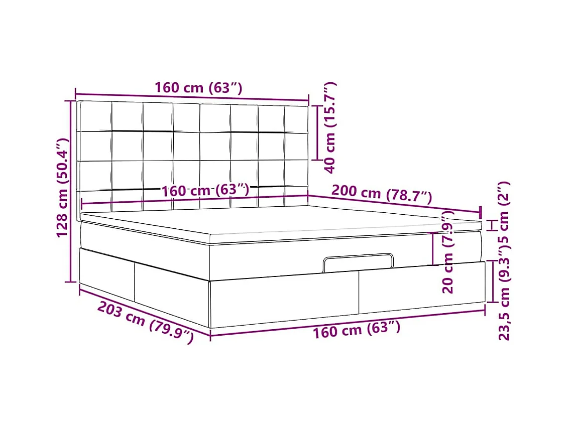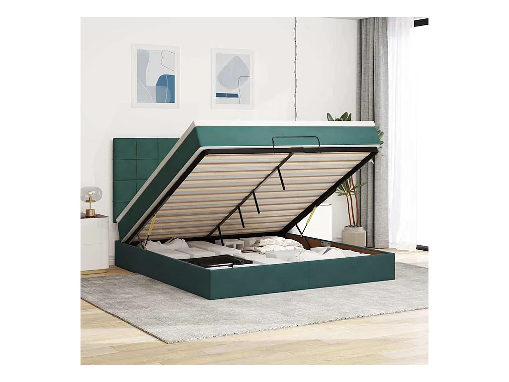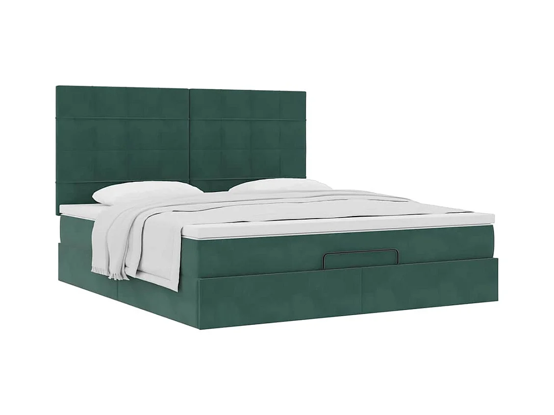 Cadre de lit ottoman avec matelas vert foncé 160x200 cm velours