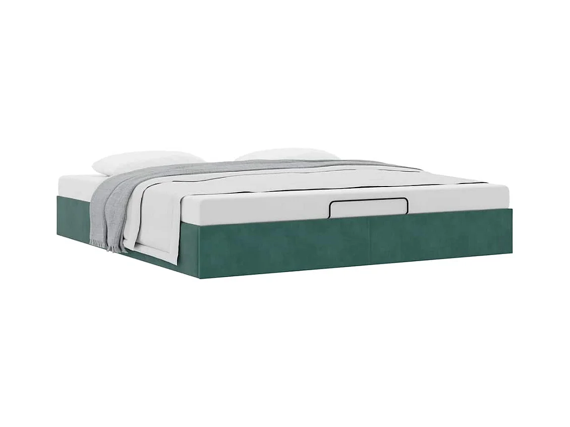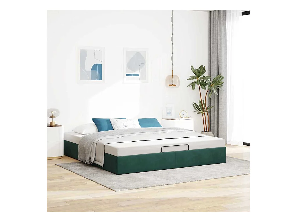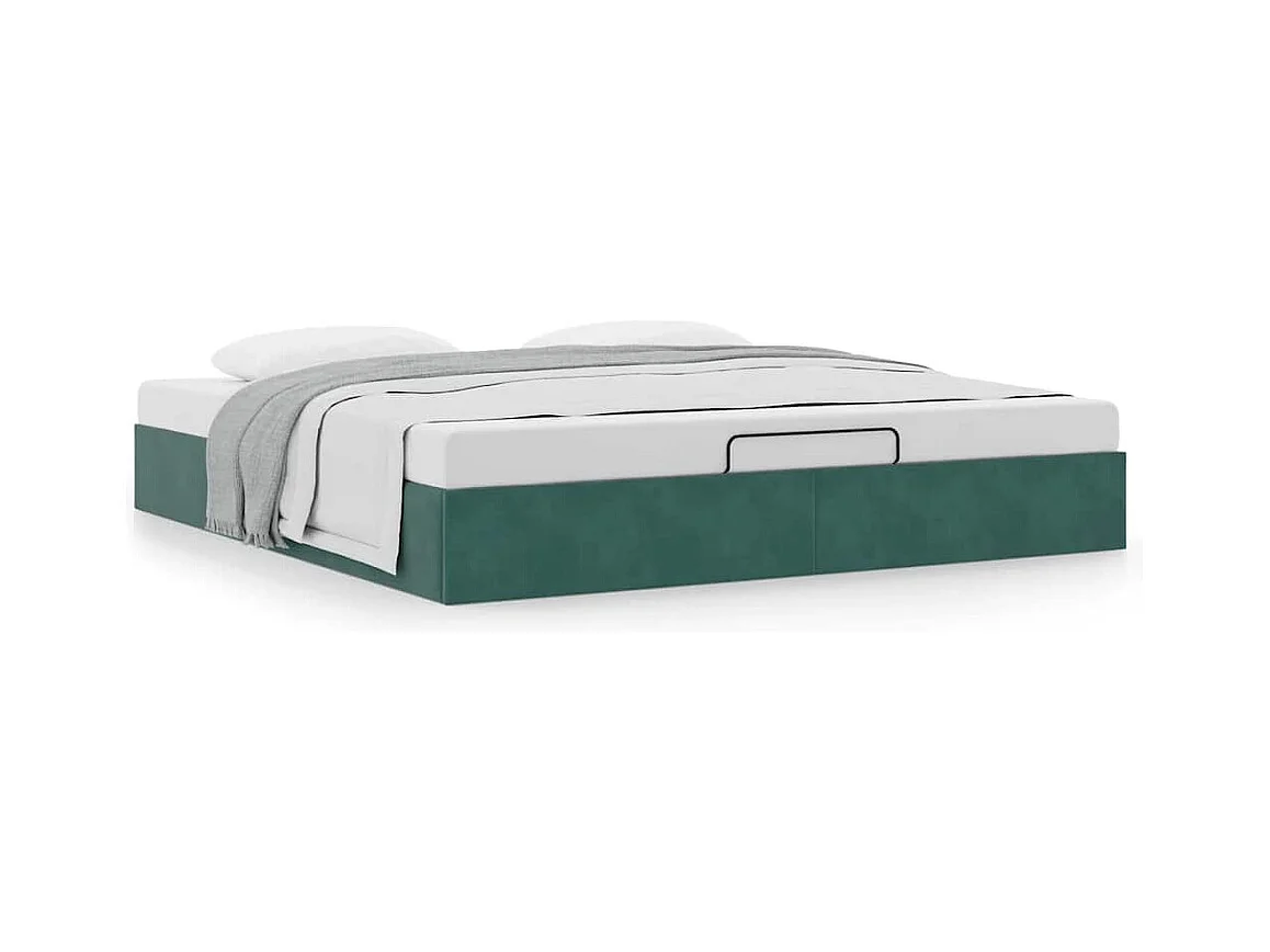 Cadre de lit ottoman avec matelas vert foncé 180x200 cm velours