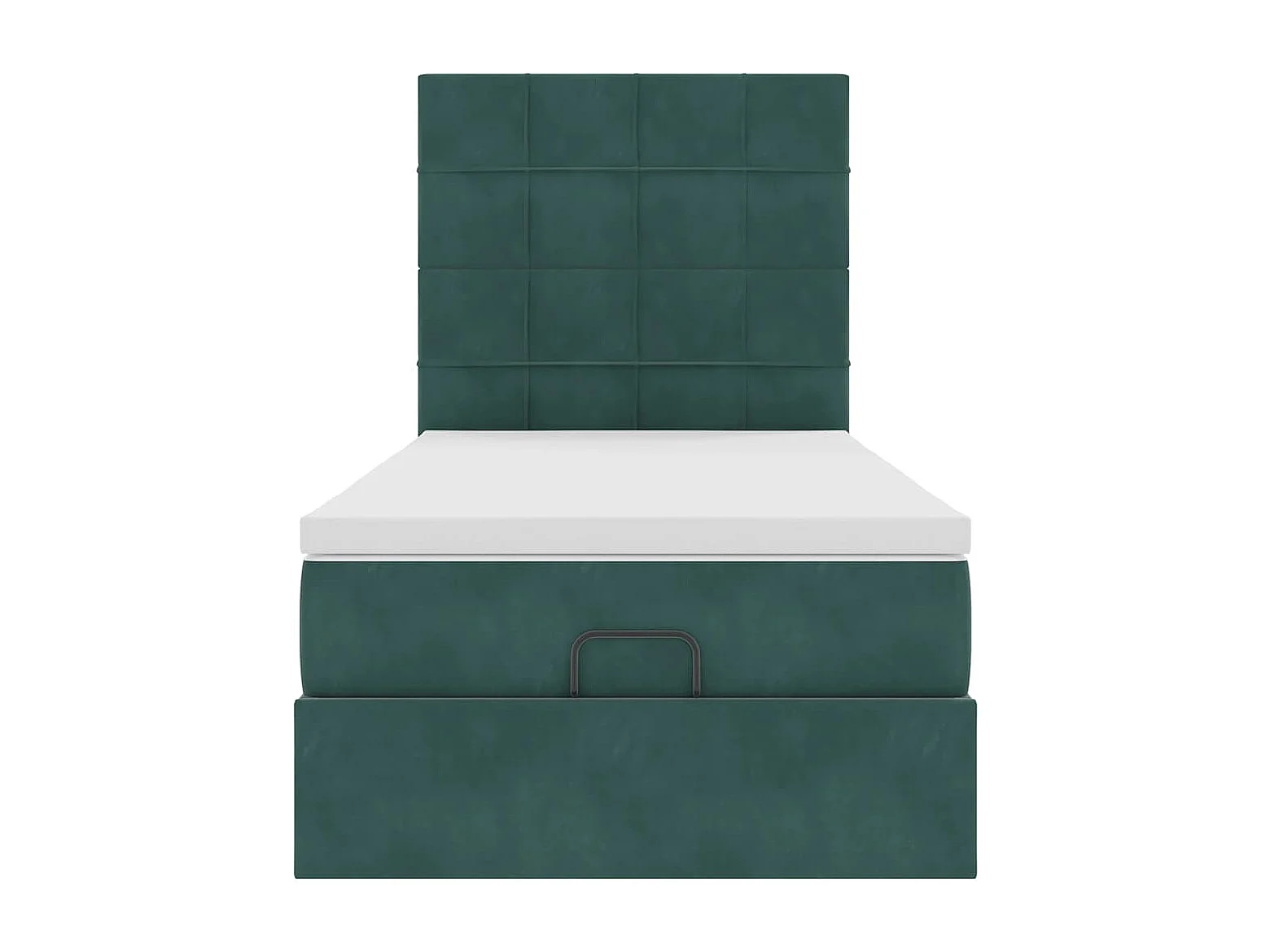 Cadre de lit ottoman avec matelas vert foncé 90x200 cm velours