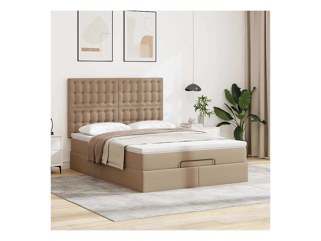 Cadre de lit ottoman et matelas cappuccino 140x190cm similicuir