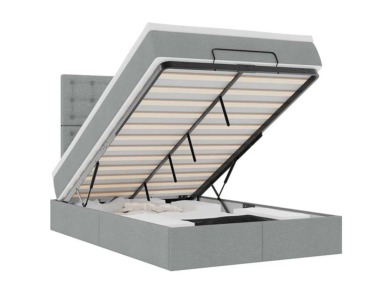 Cadre de lit ottoman et matelas gris clair 120x200 cm tissu