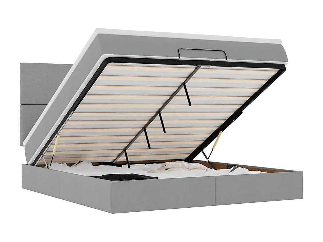 Cadre de lit ottoman et matelas gris clair 180x200 cm tissu
