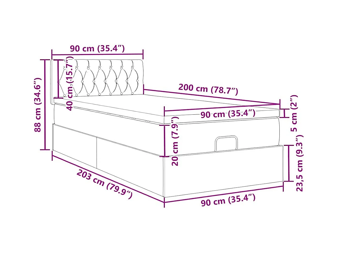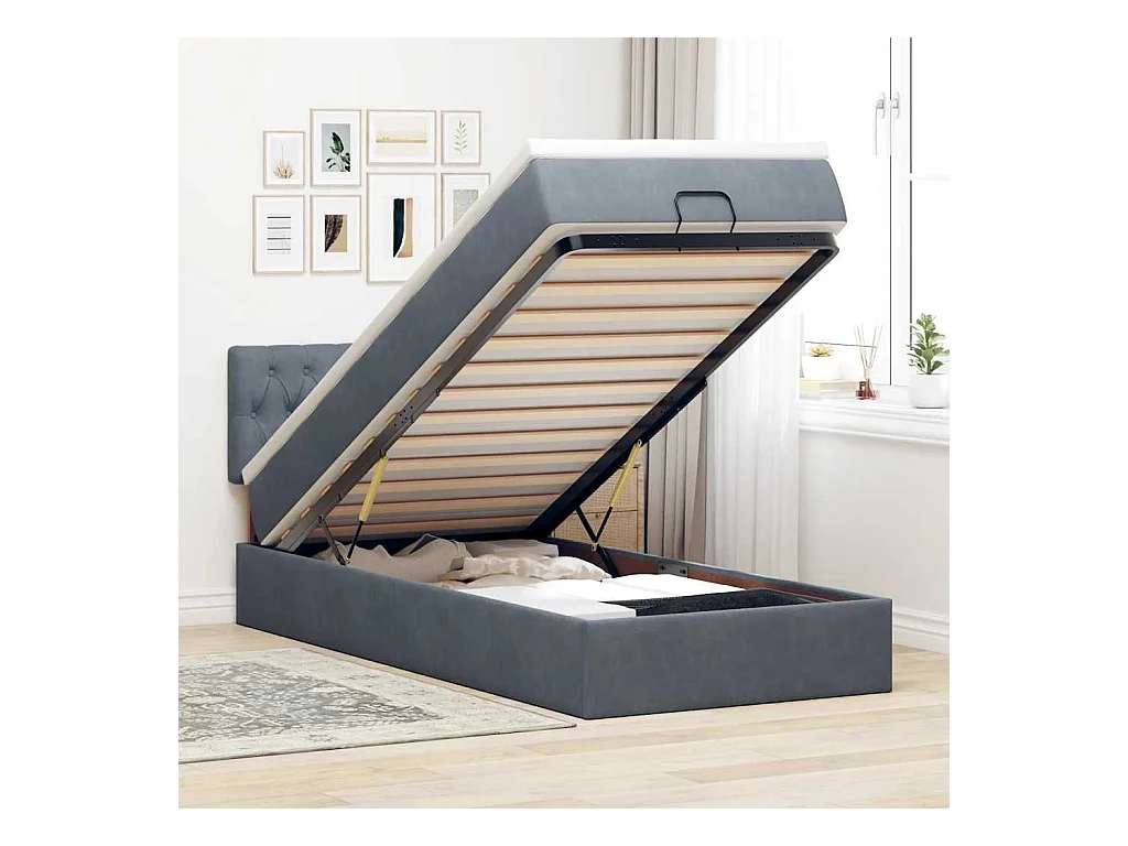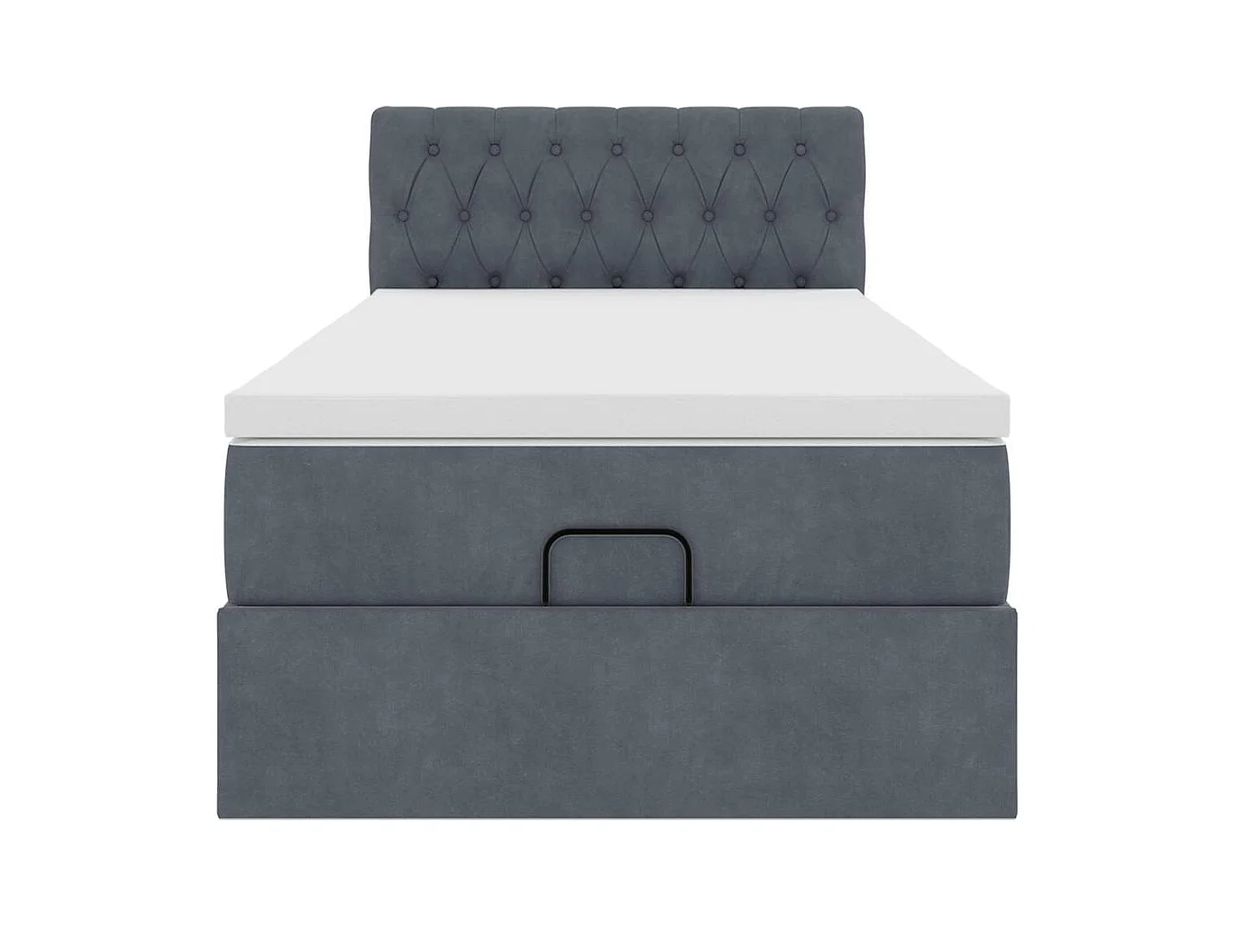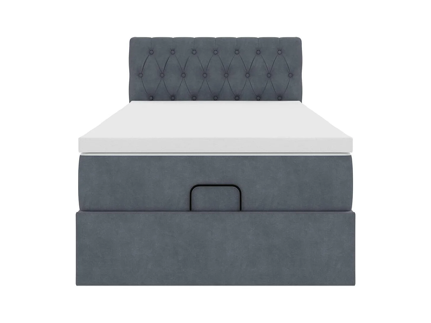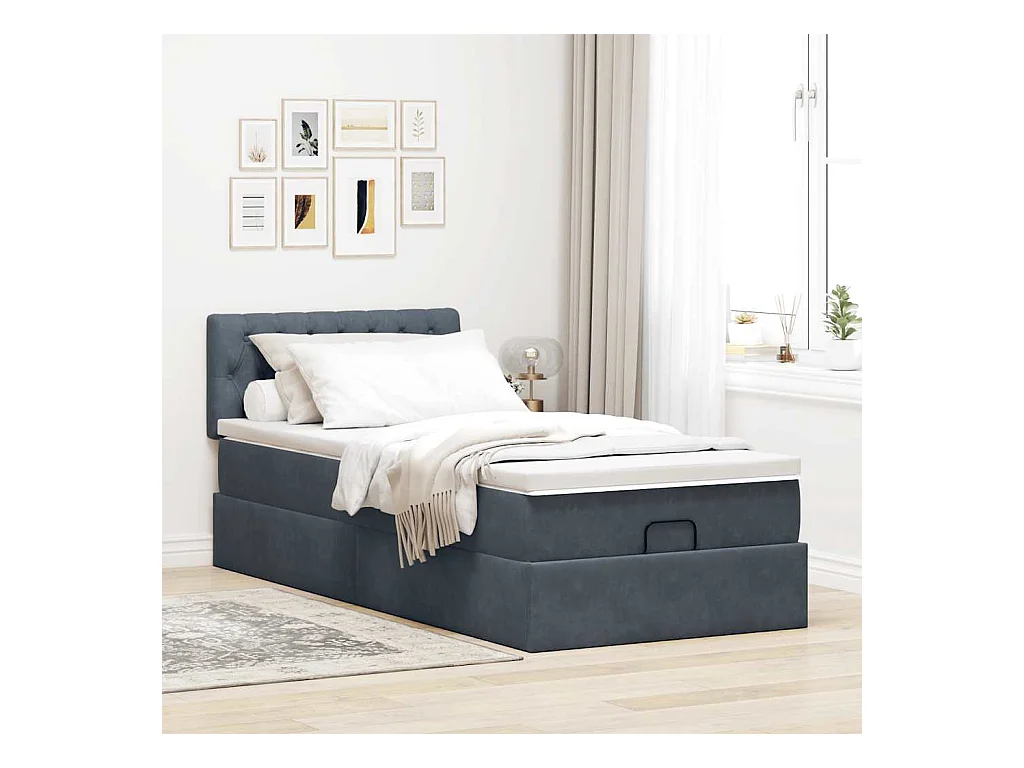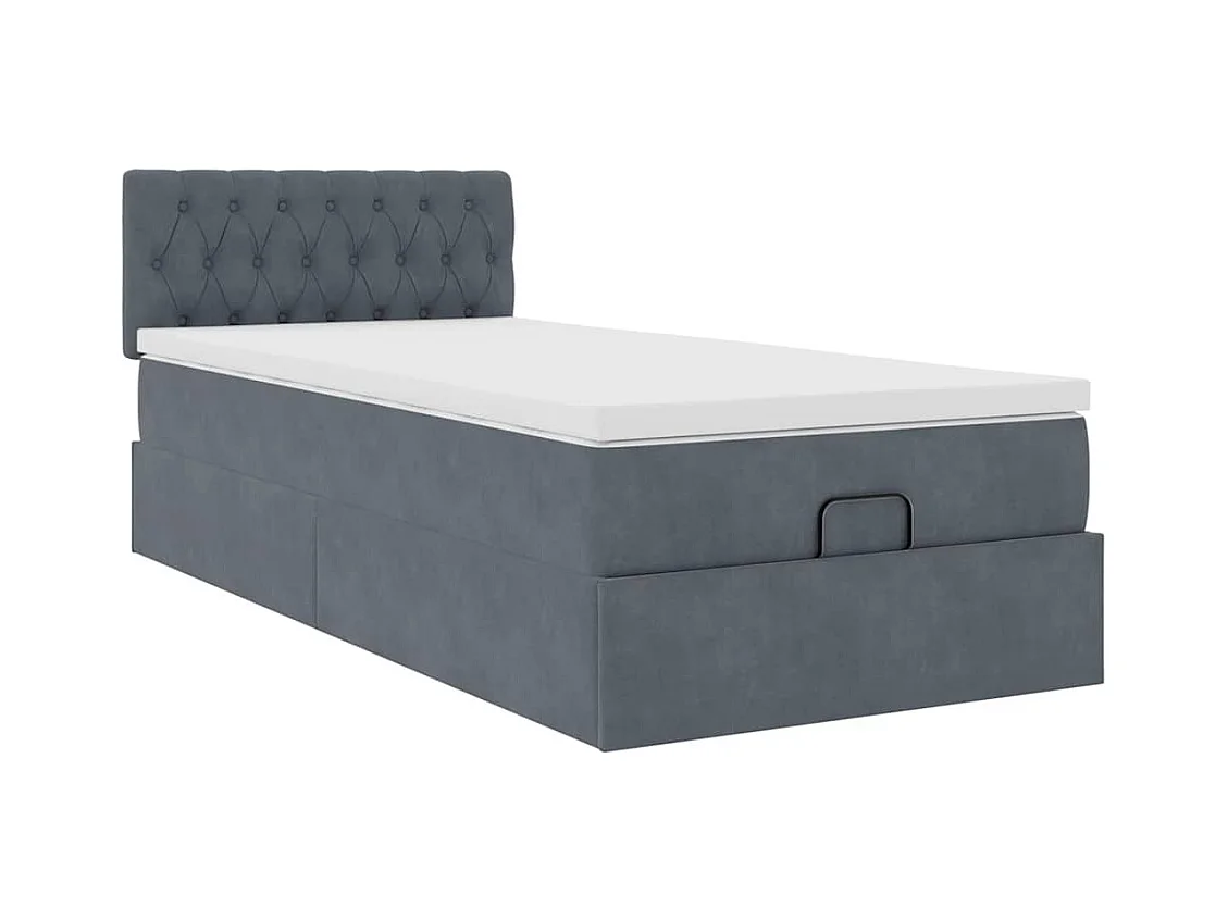 Cadre de lit ottoman et matelas gris foncé 90x200 cm velours