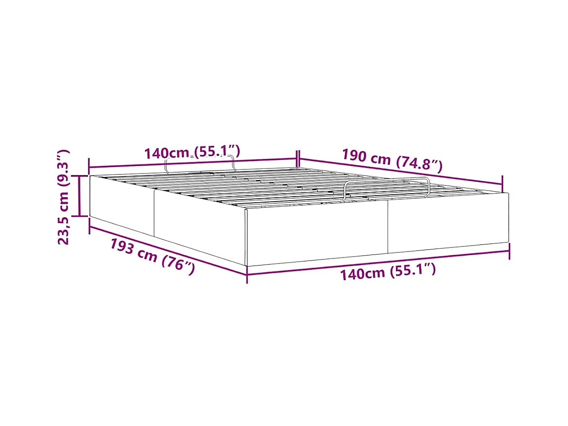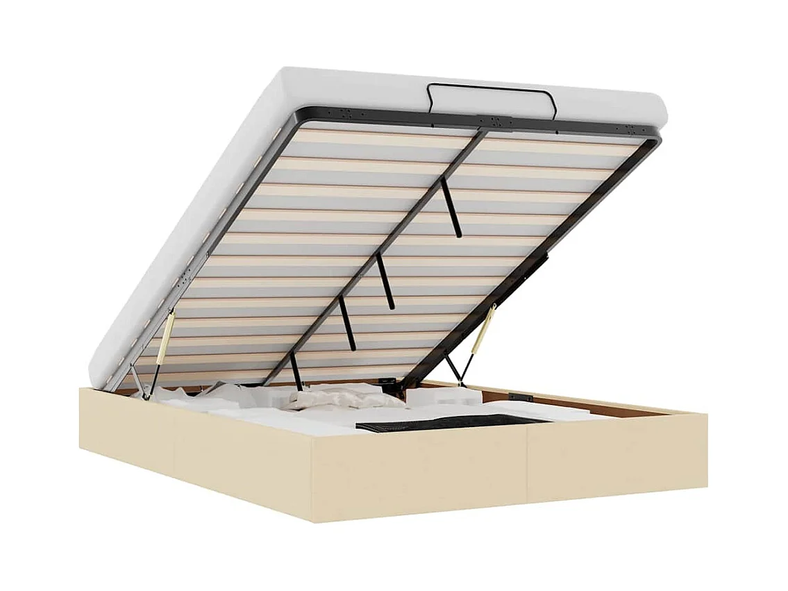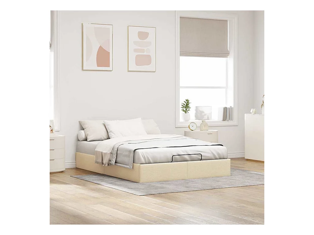 Cadre de lit ottoman sans matelas crème 140x190 cm tissu