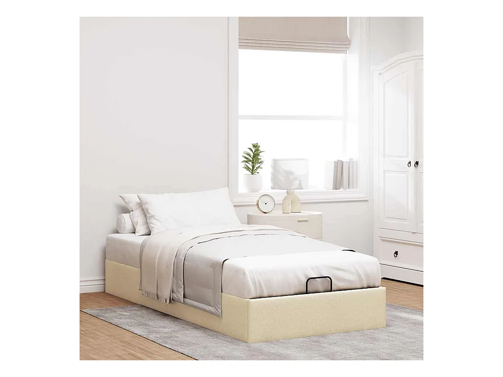 Cadre de lit ottoman sans matelas crème 80x200 cm tissu