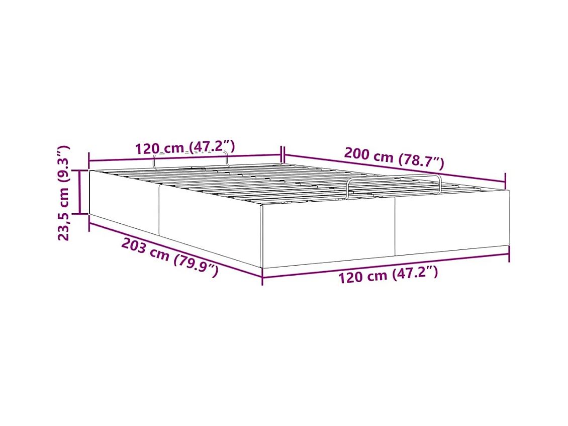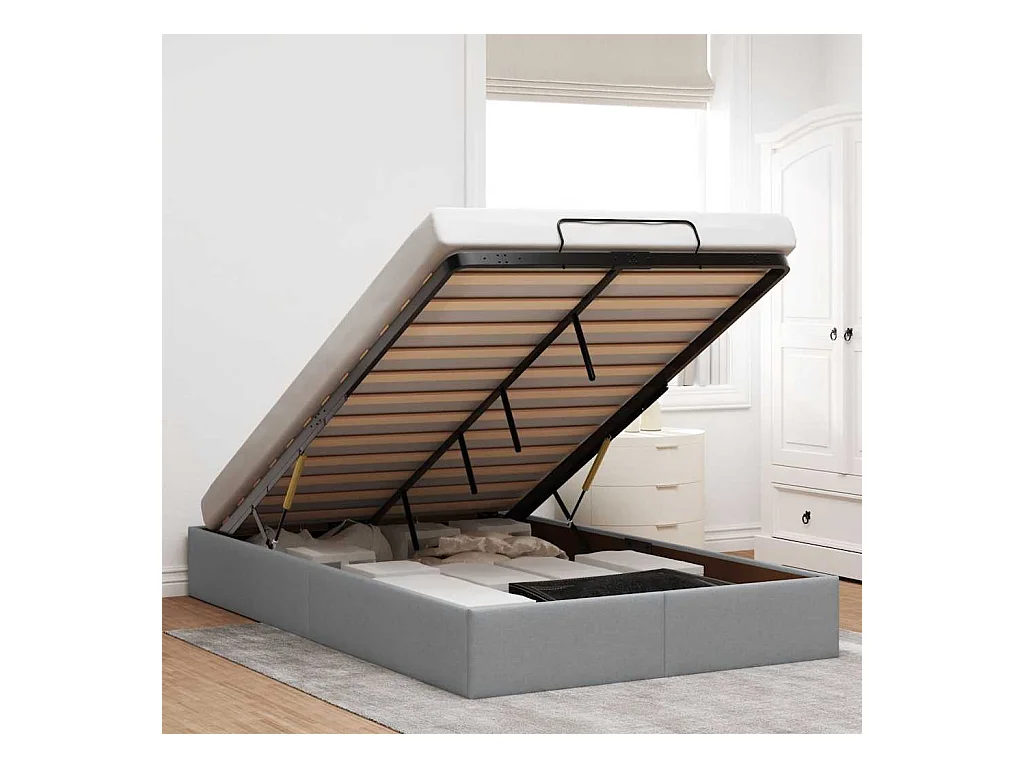 Cadre de lit ottoman sans matelas gris clair 120x200 cm tissu