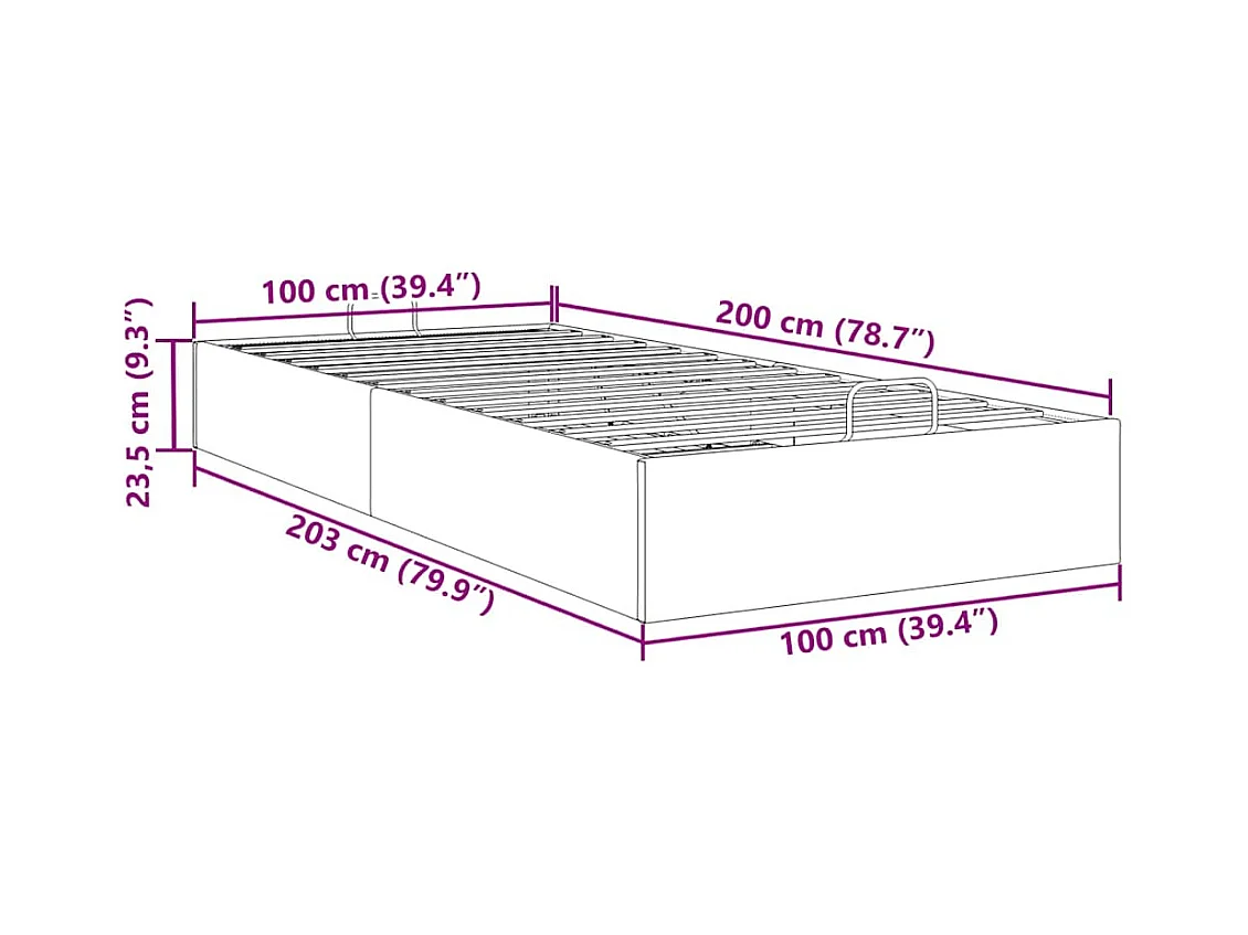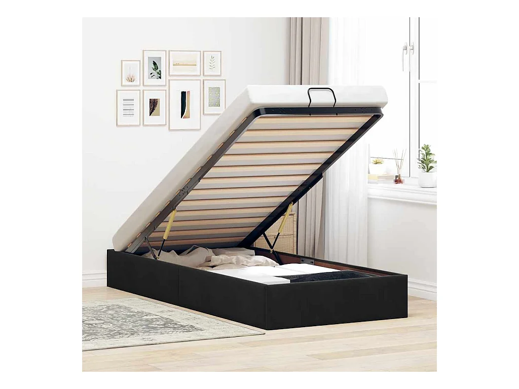 Cadre de lit ottoman sans matelas noir 100x200 cm velours