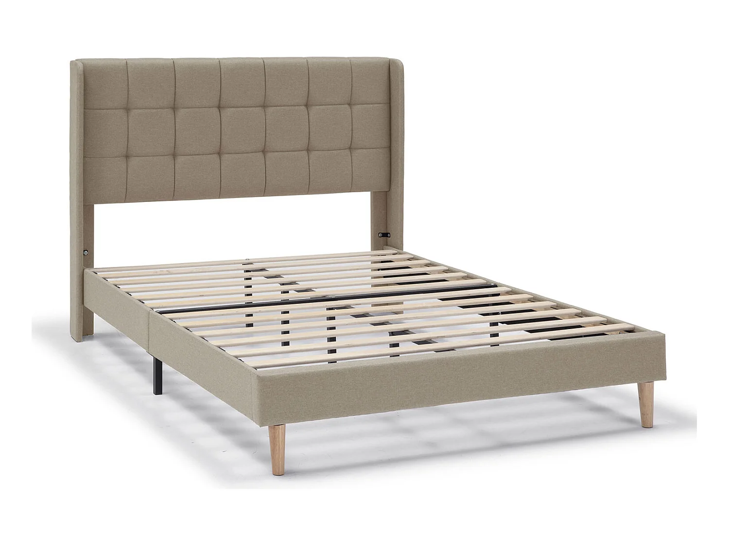 Cadre de lit plateforme Esther capitonné 30 cm, 140x190 cm, Beige