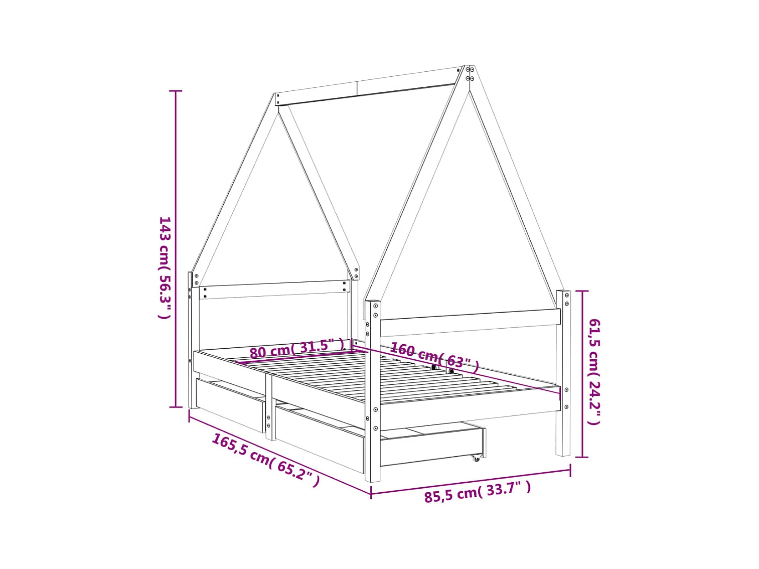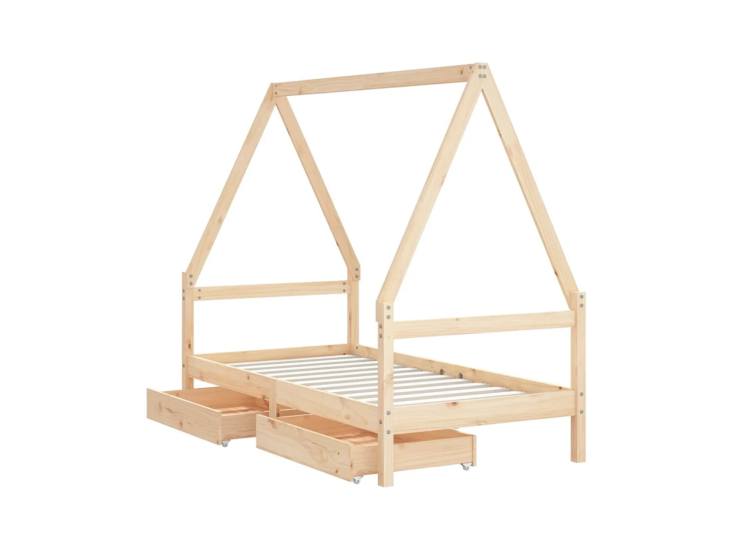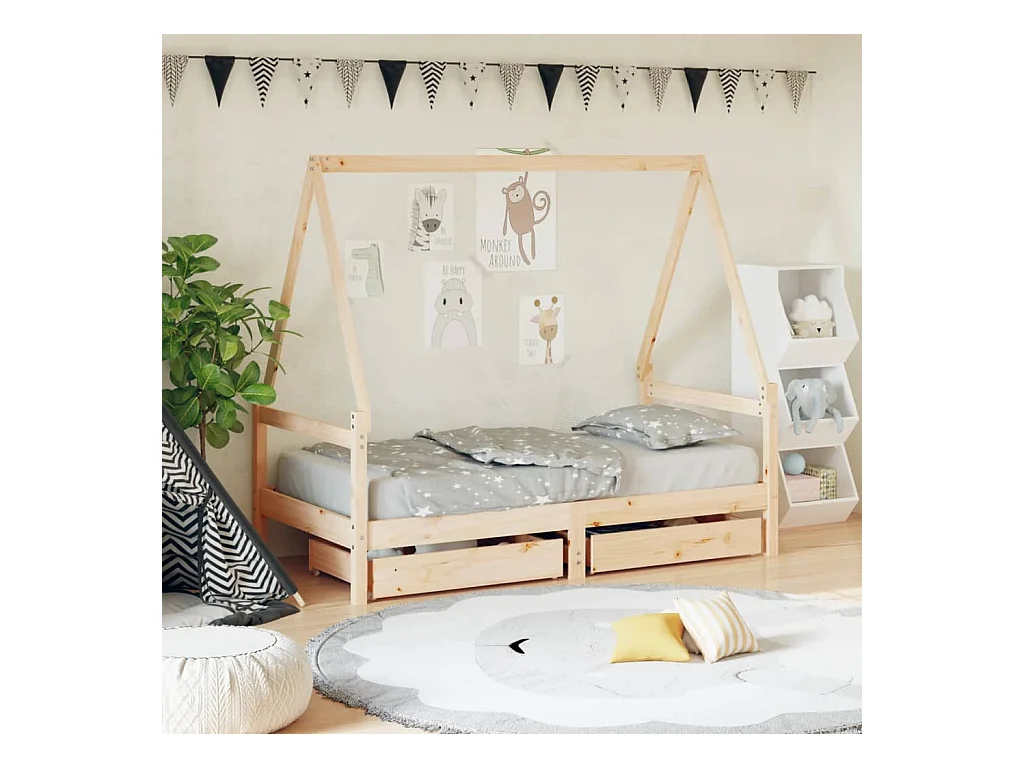 Cadre de lit pour enfant et tiroirs 80x160 bois de pin massif