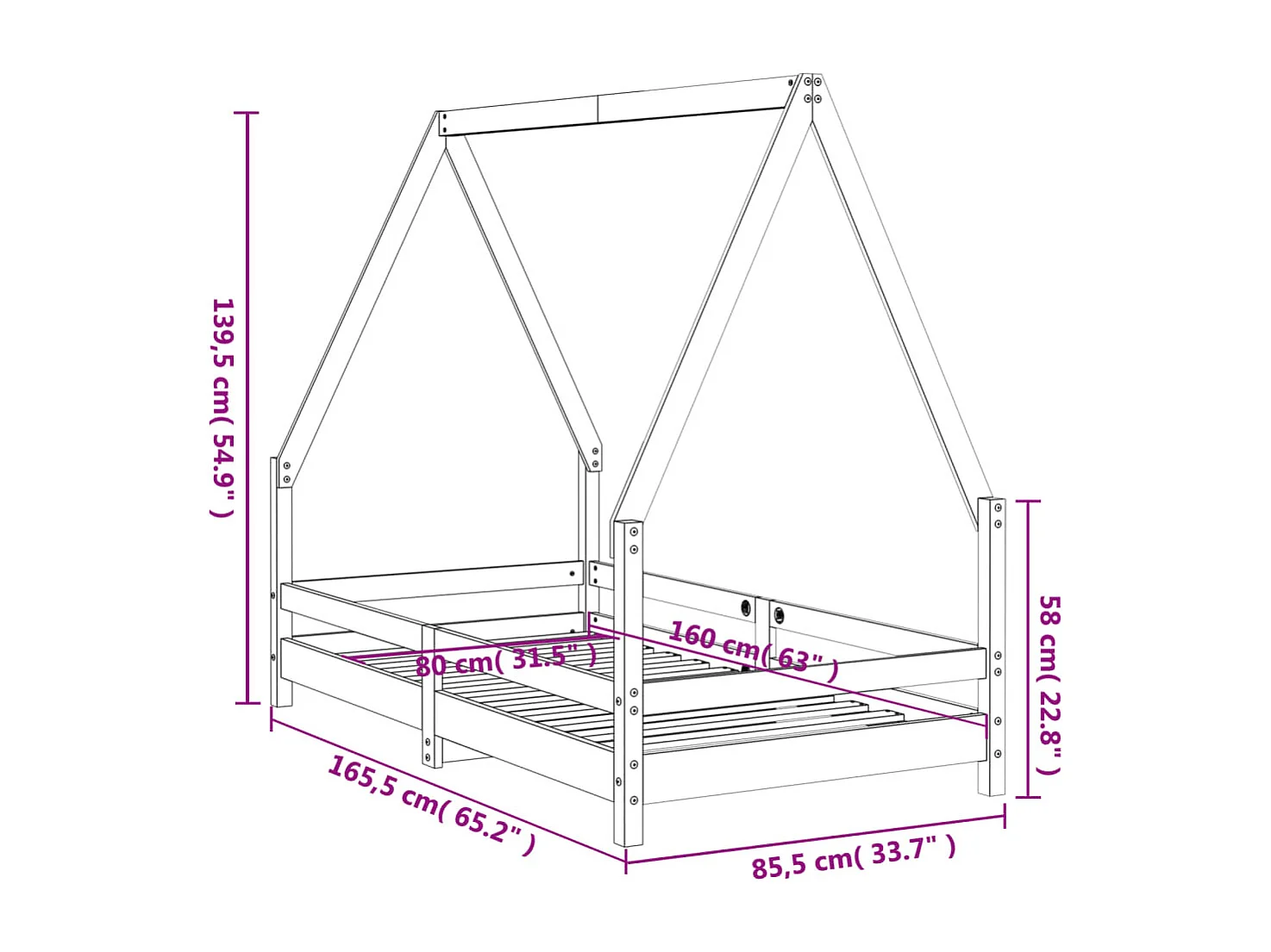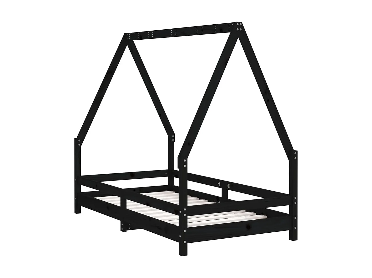 Cadre de lit pour enfant noir 80x160 bois de pin massif