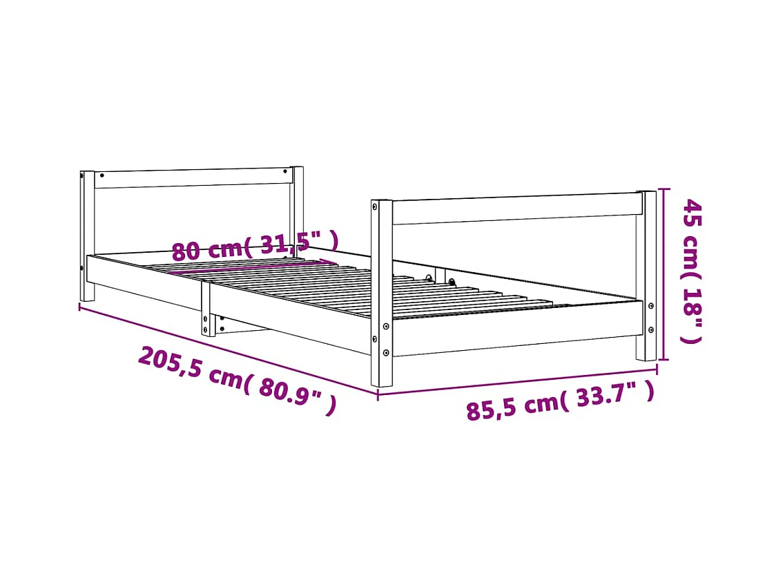 Cadre de lit pour enfants sans matelas 80x200 cm pin massif
