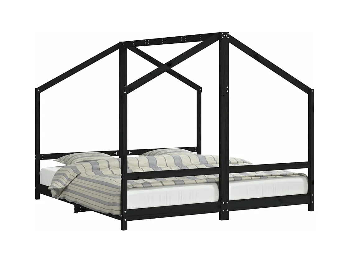 Cadre de lit pour enfants noir 2x(90x190) cm bois de pin massif