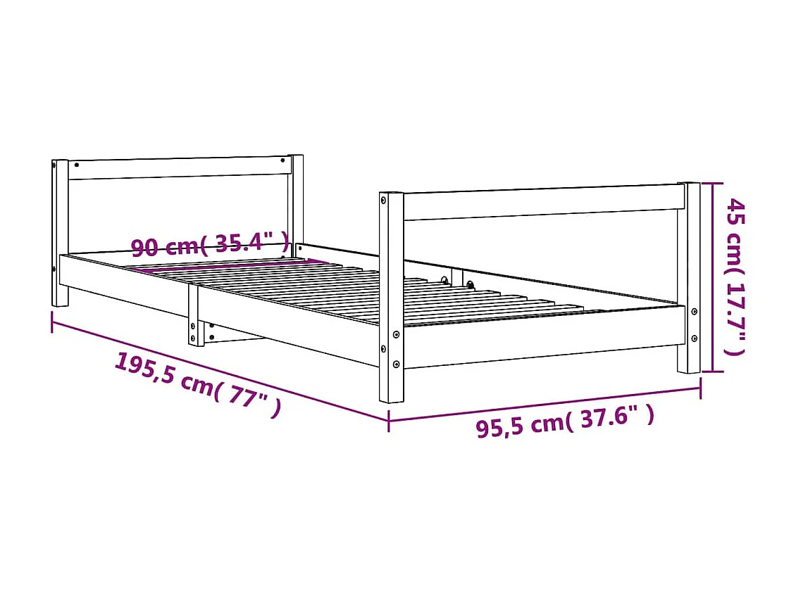 Cadre de lit pour enfants noir 90x190 bois de pin massif