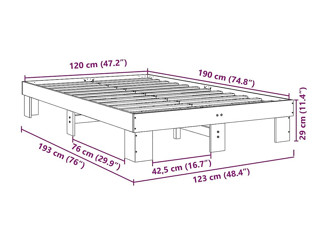 Cadre de lit sans matelas chêne sonoma 120x190 cm