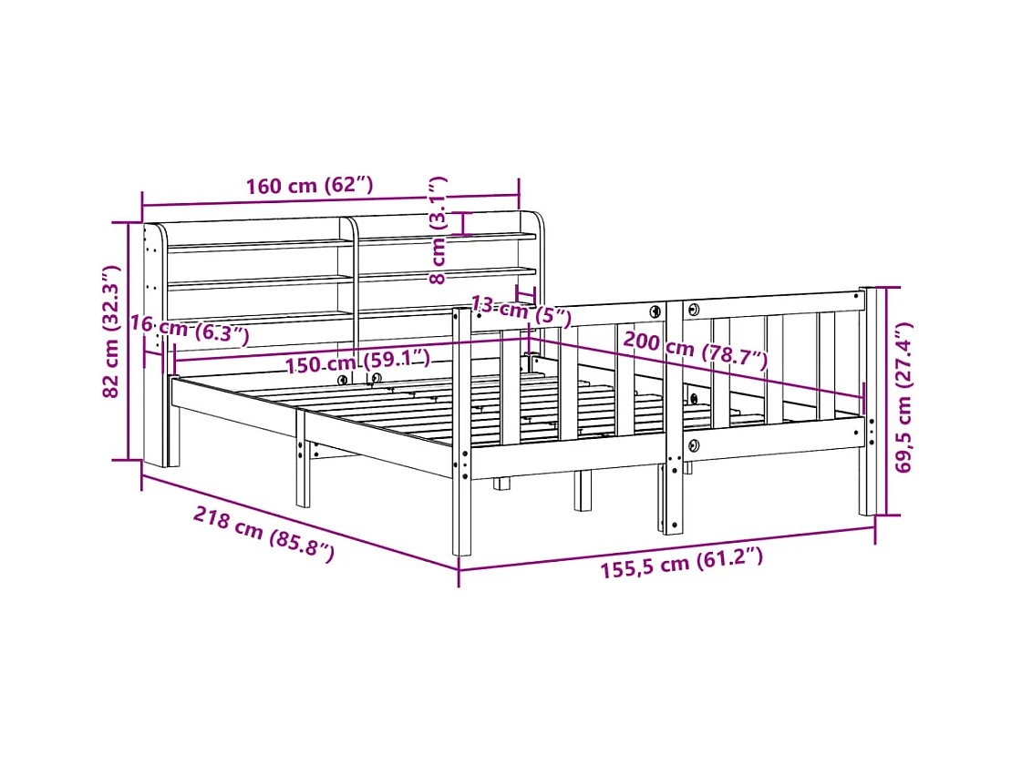 Cadre de lit sans matelas 150x200 cm bois de pin massif