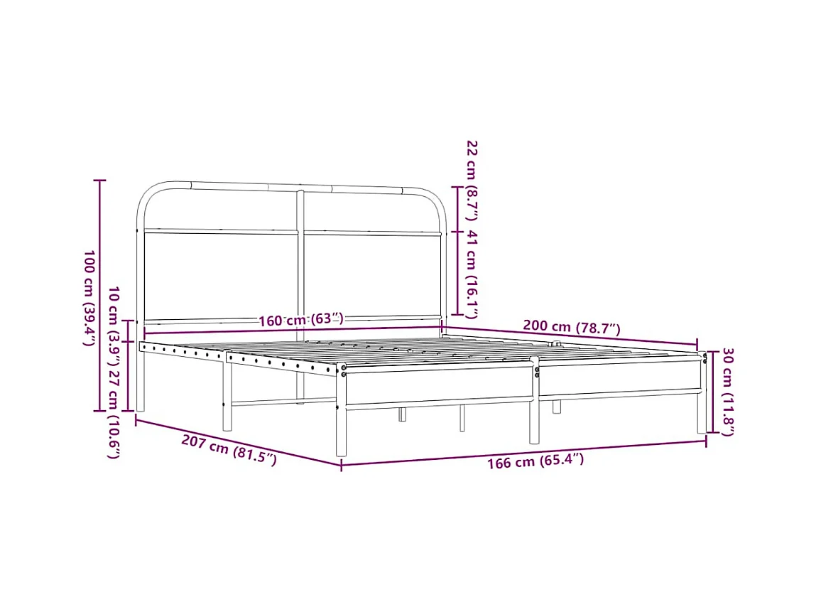 Cadre de lit en métal sans matelas chêne fumé 160x200 cm