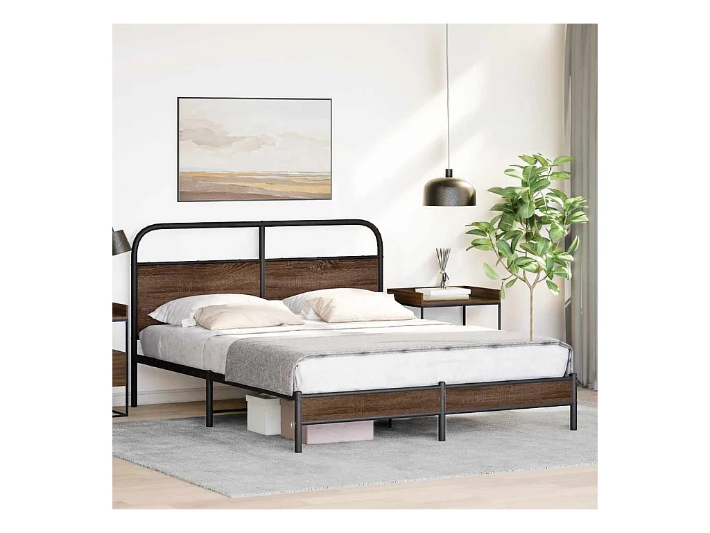 Cadre de lit en métal sans matelas chêne marron 160x200 cm