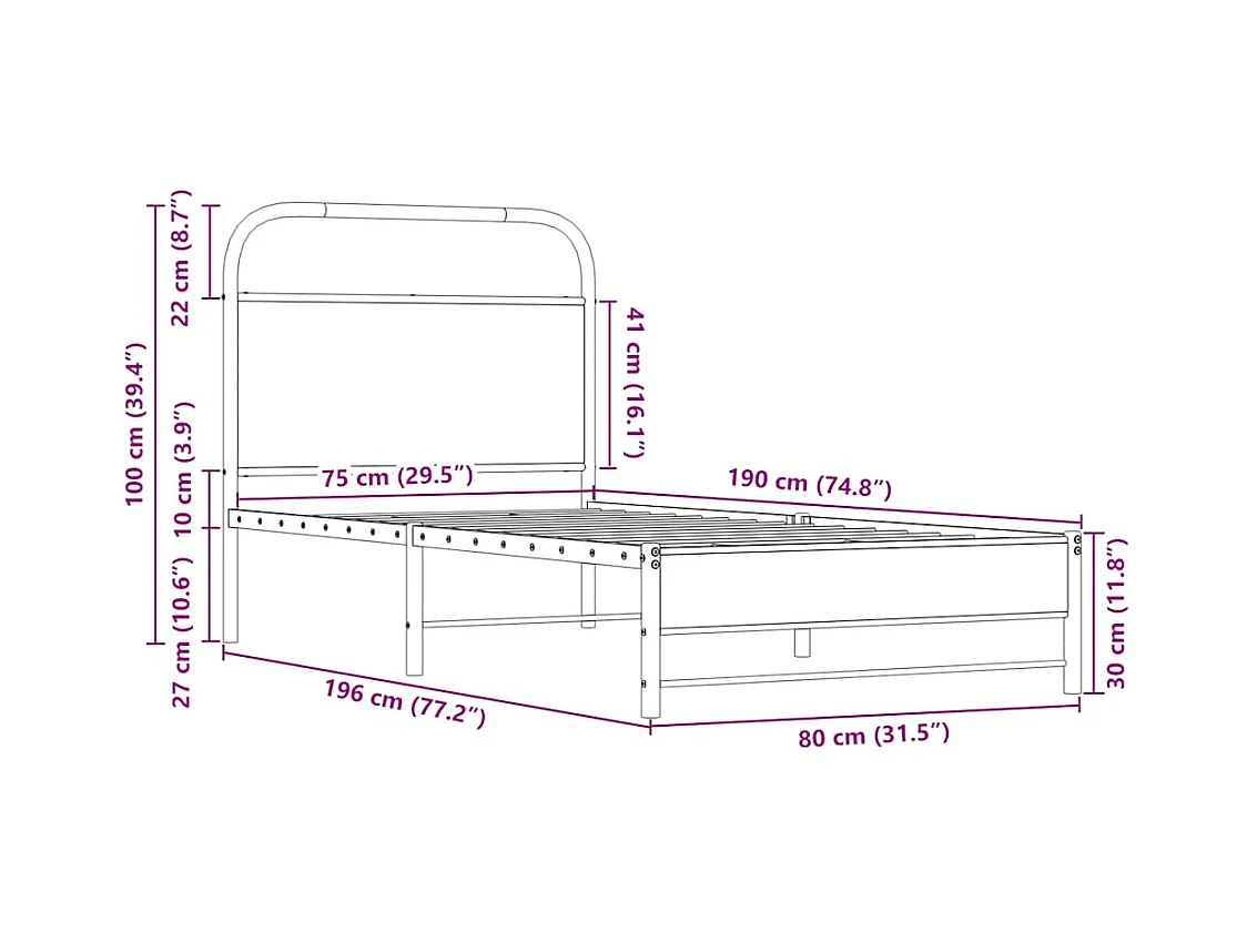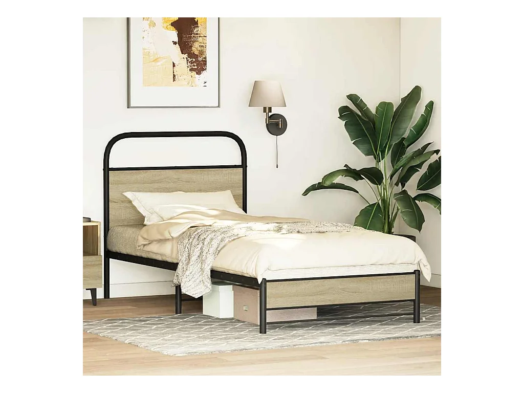 Cadre de lit en métal sans matelas chêne sonoma 75x190 cm
