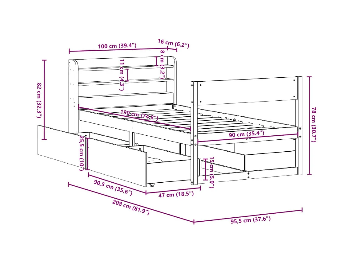 Cadre de lit sans matelas 90x190 cm bois de pin massif