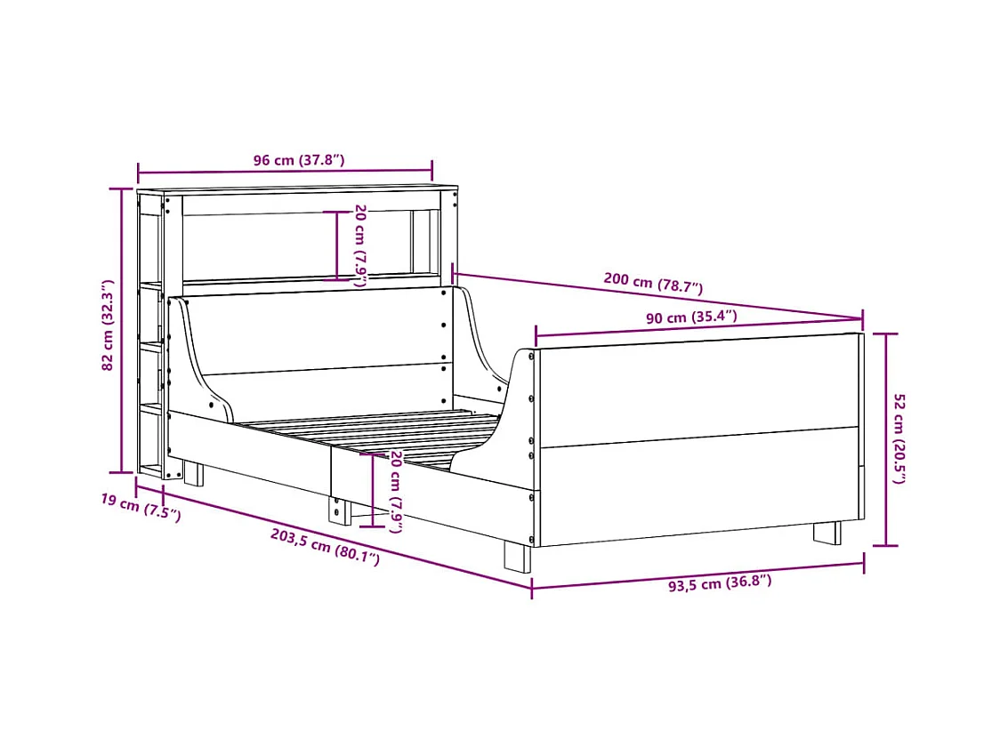 Cadre de lit sans matelas 90x200 cm bois de pin massif