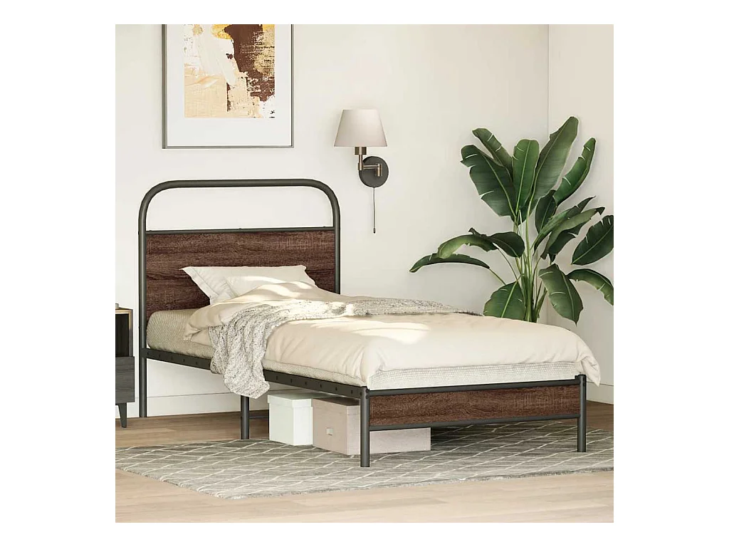 Cadre de lit sans matelas 90x200cm chêne marron bois ingénierie