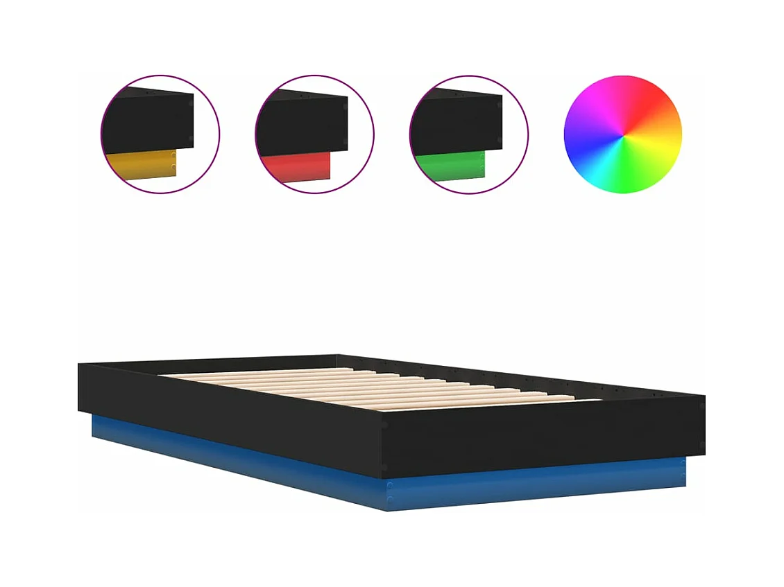 Cadre de lit sans matelas avec lumières LED noir 75x190 cm