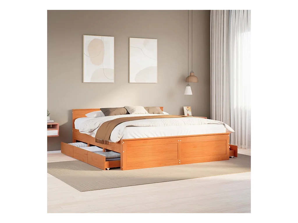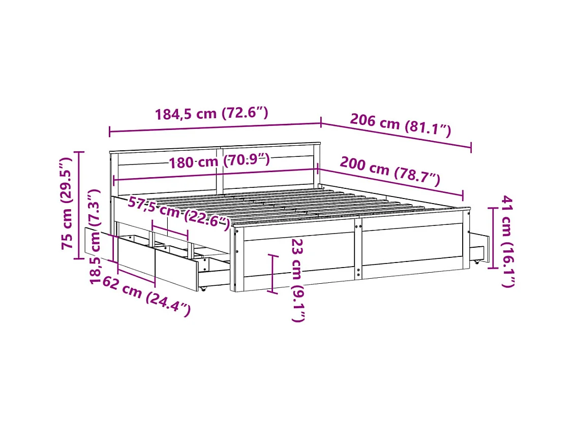 Cadre de lit sans matelas avec tête de lit 180x200 cm bois pin