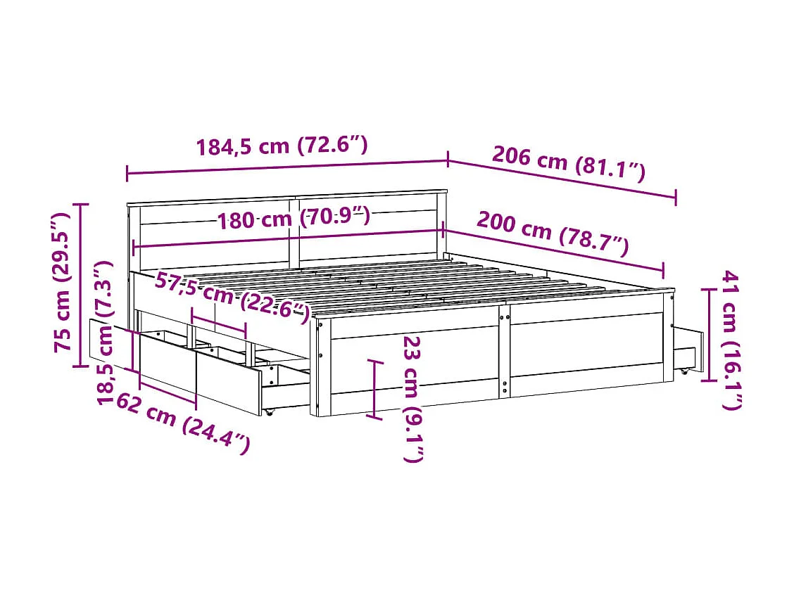Cadre de lit sans matelas avec tête de lit 180x200 cm bois pin