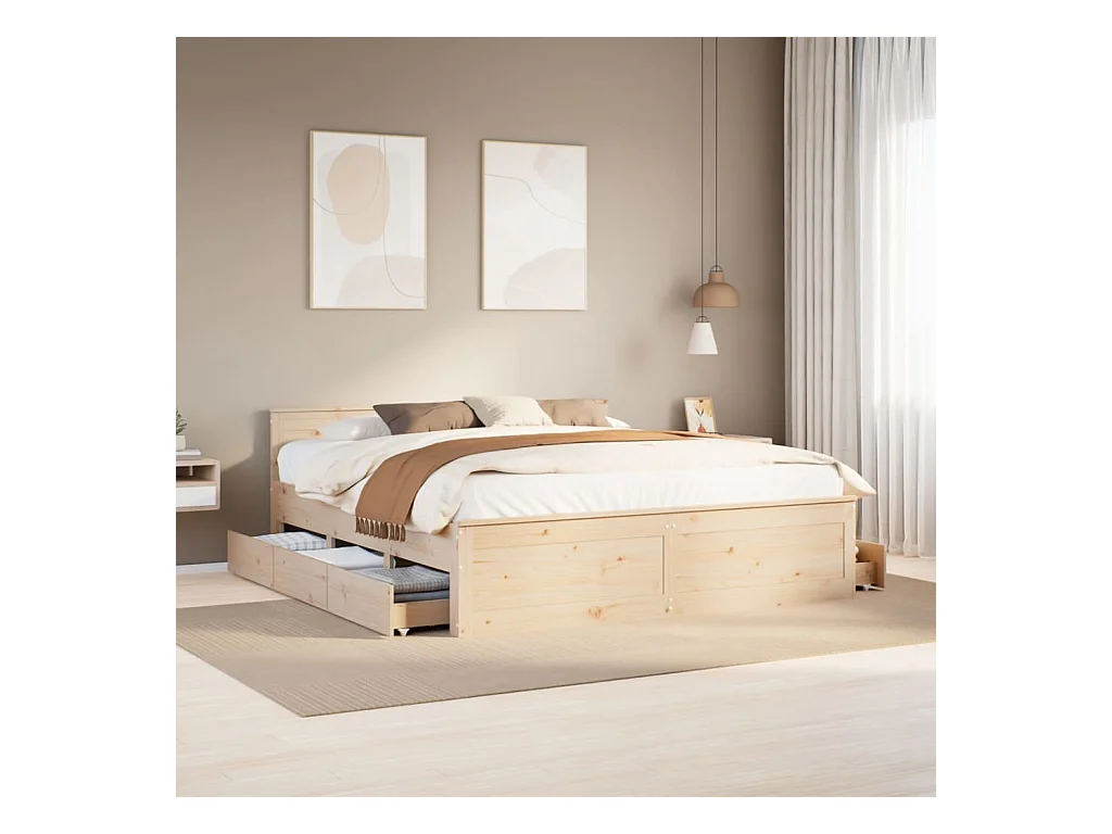 Cadre de lit sans matelas avec tête de lit 200x200 cm bois pin