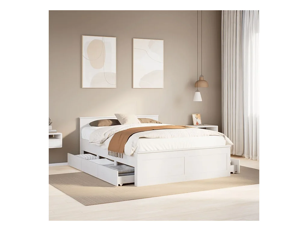 Cadre de lit avec tiroirs sans matelas blanc 160x200 cm