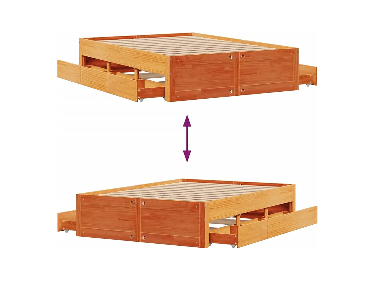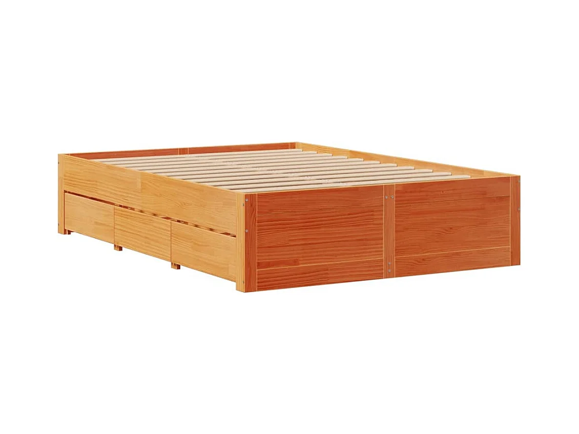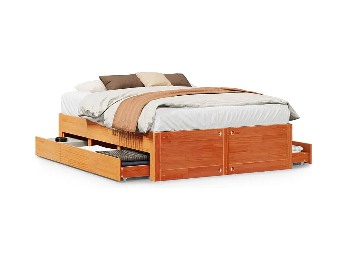 Cadre de lit sans matelas avec tiroirs brun cire 140x200 cm pin