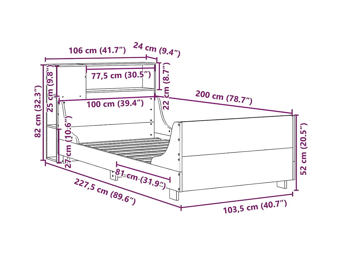 Cadre de lit sans matelas blanc 100x200 cm bois de pin massif