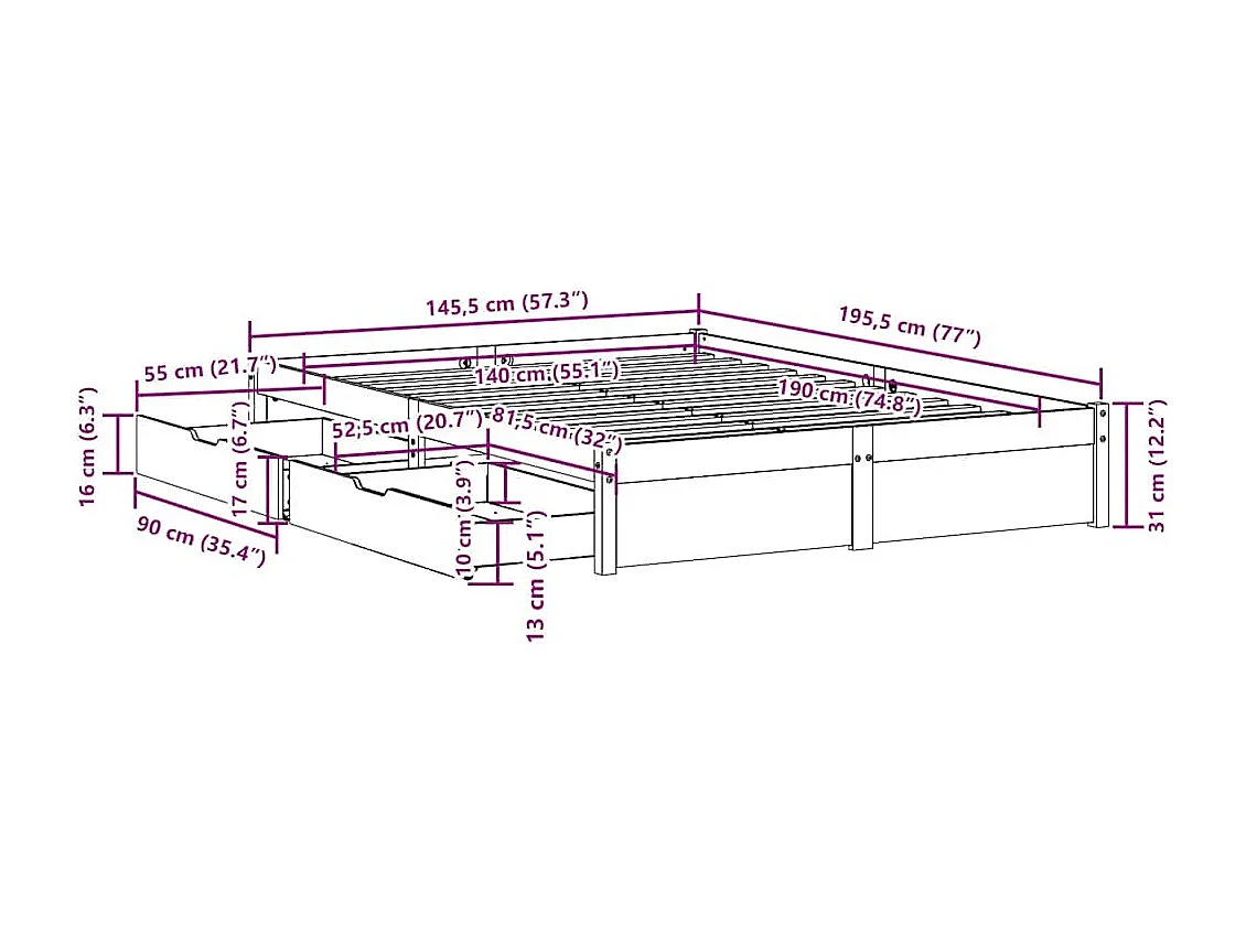 Cadre de lit sans matelas blanc 140x190 cm bois de pin massif