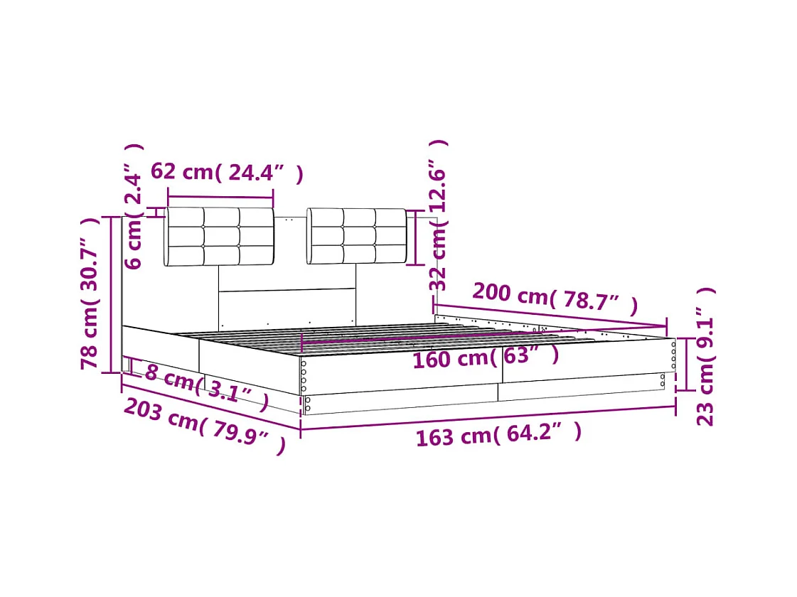 Cadre de lit sans matelas blanc 160x200 cm