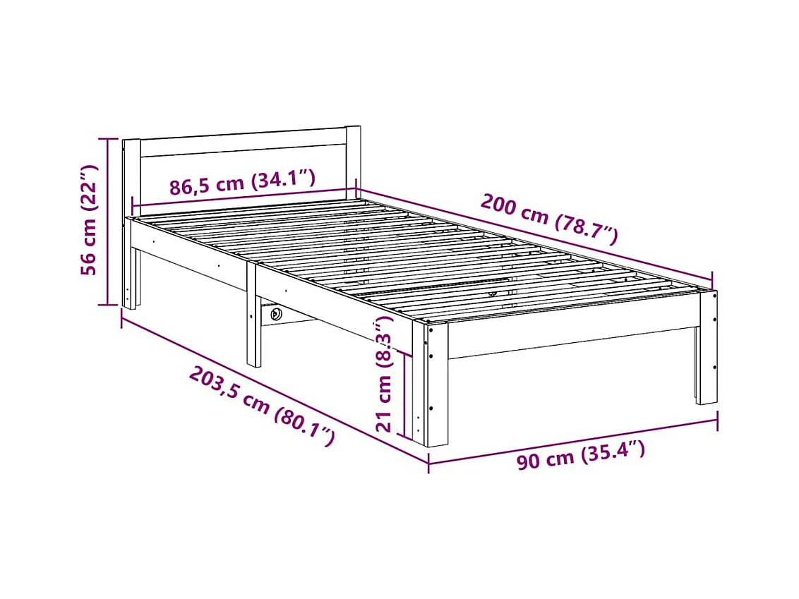 Cadre de lit sans matelas blanc 90x200 cm bois de pin massif