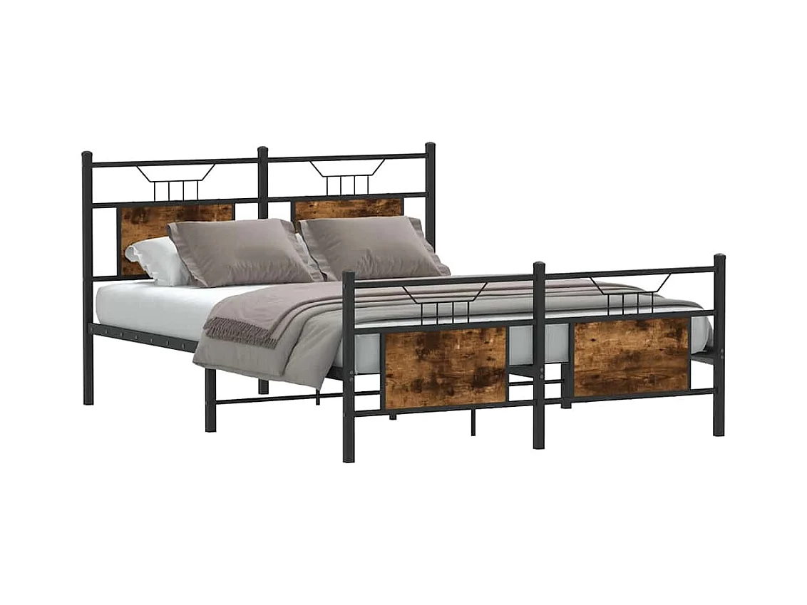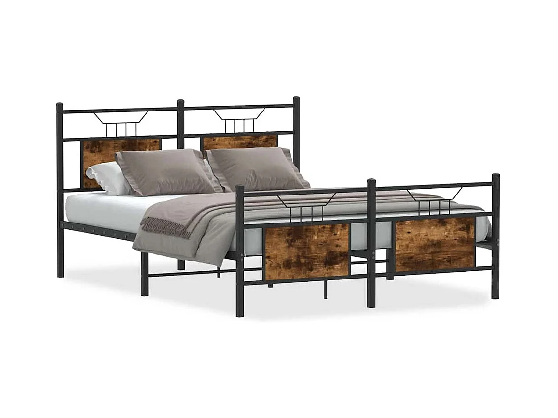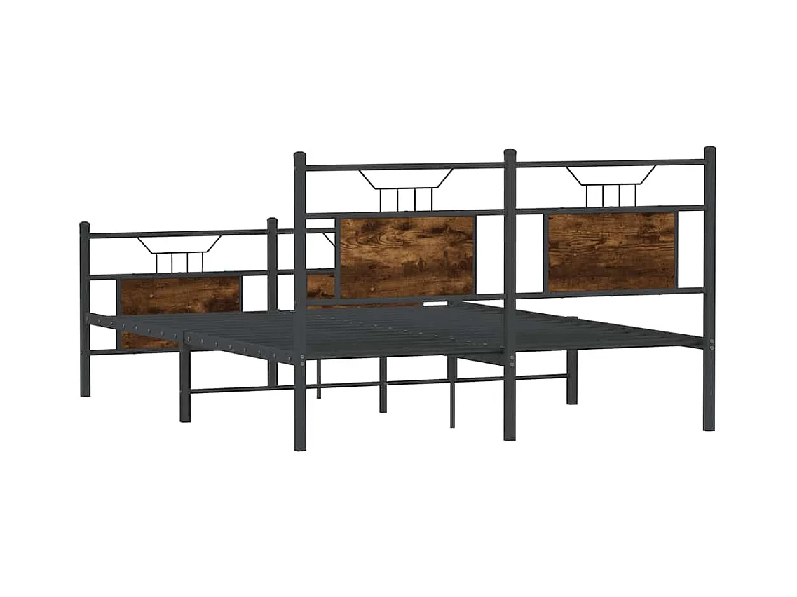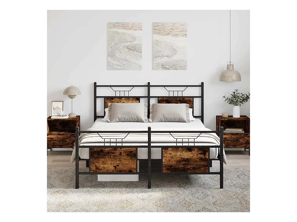 Cadre de lit métal avec tête de lit chêne fumé 137x190 cm