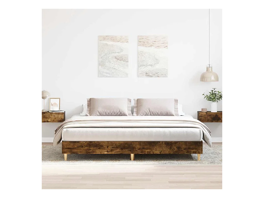 Cadre de lit sans matelas chêne fumé 200x200 cm bois ingénierie