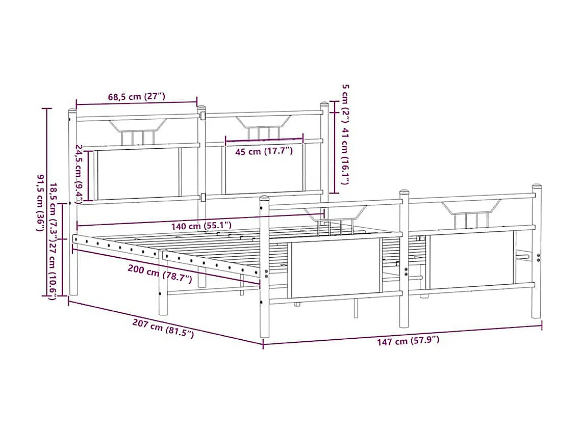 Cadre de lit sans matelas avec tête de lit 140x200 cm