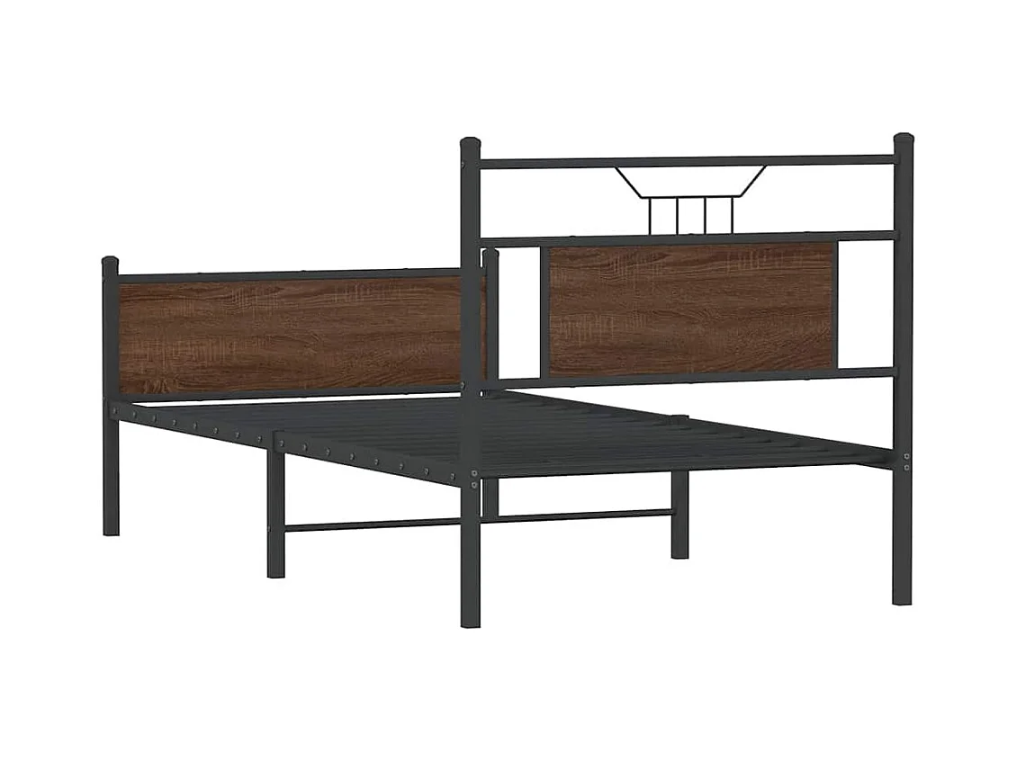 Cadre de lit en métal avec tête de lit chêne fumé 80x200 cm