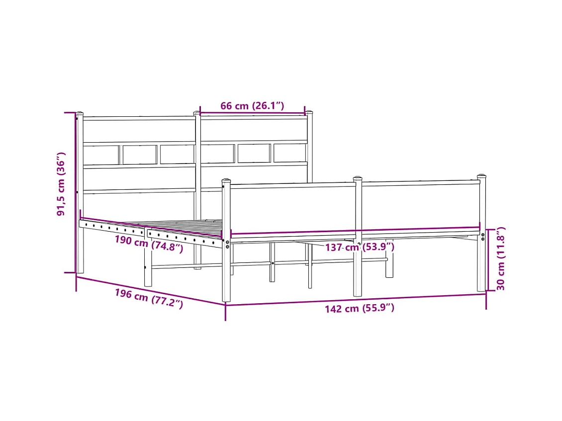 Cadre de lit sans matelas chêne sonoma 137x190 cm
