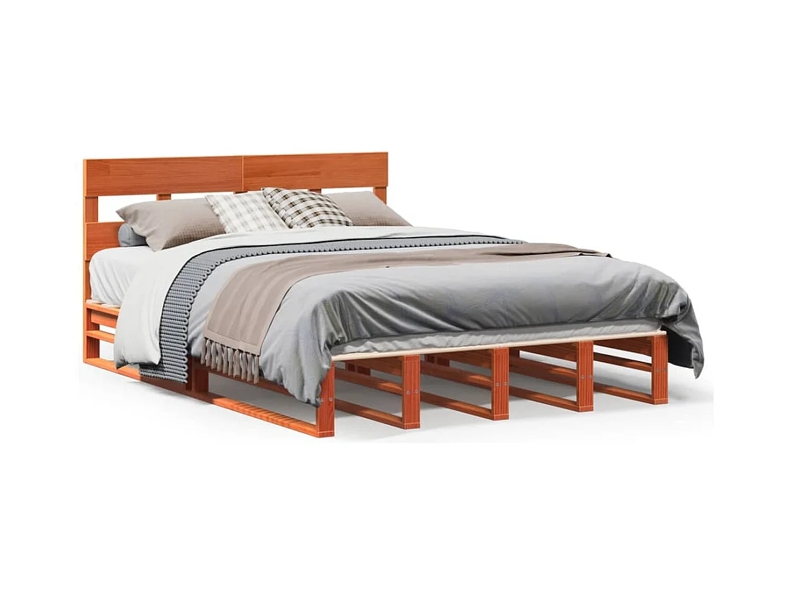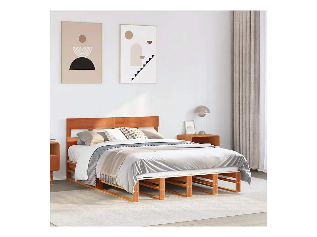 Cadre de lit sans matelas cire marron 120x200cm bois pin massif