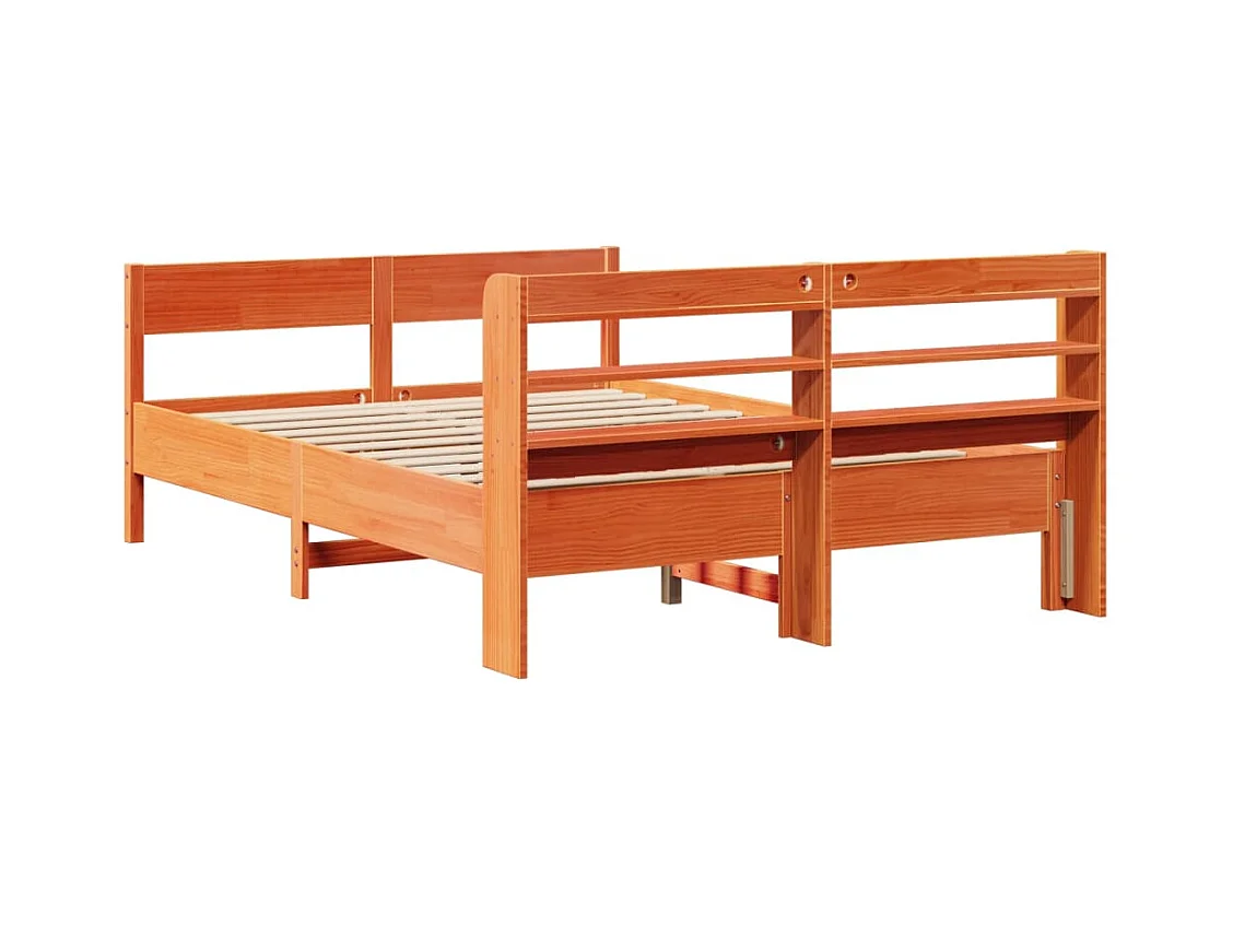 Cadre de lit sans matelas cire marron 135x190cm bois pin massif