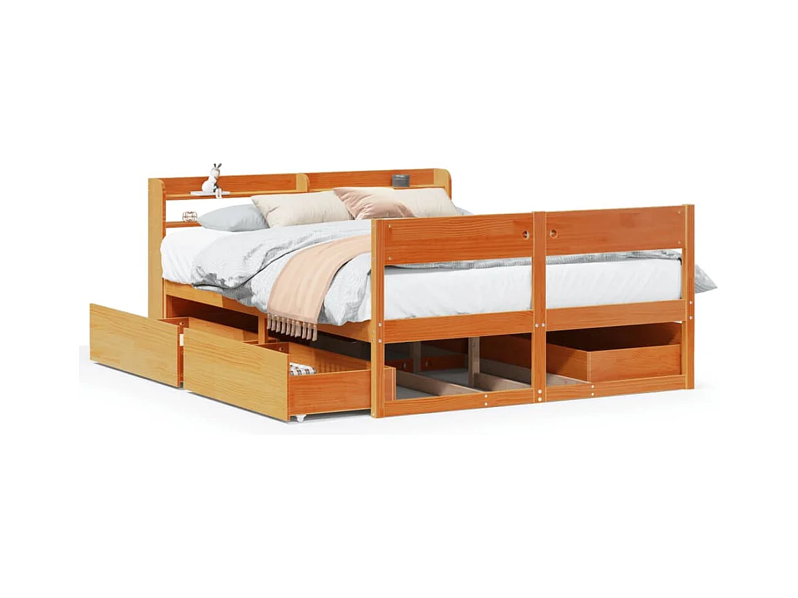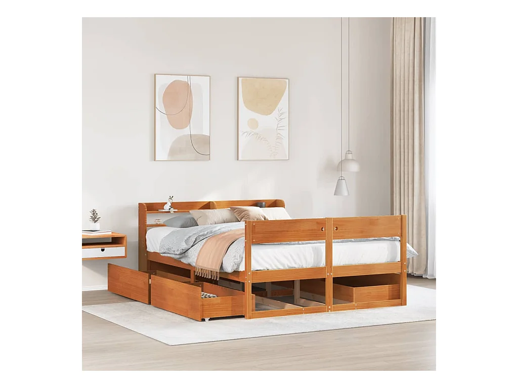 Cadre de lit sans matelas cire marron 140x190cm bois pin massif